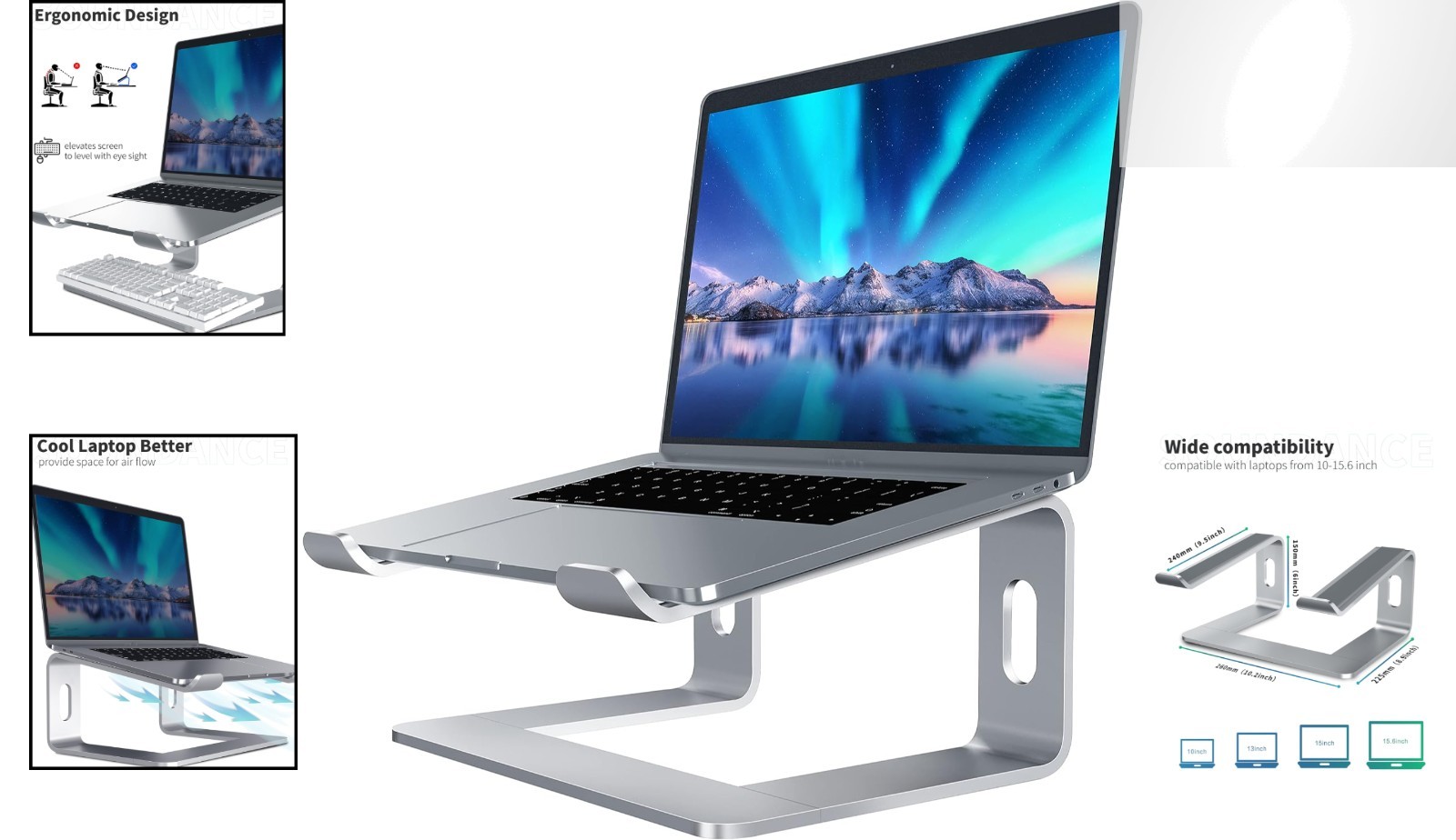 Aluminum Ergonomic Laptop Stand - Portable Riser for 10 to 15.6 Inches Laptops