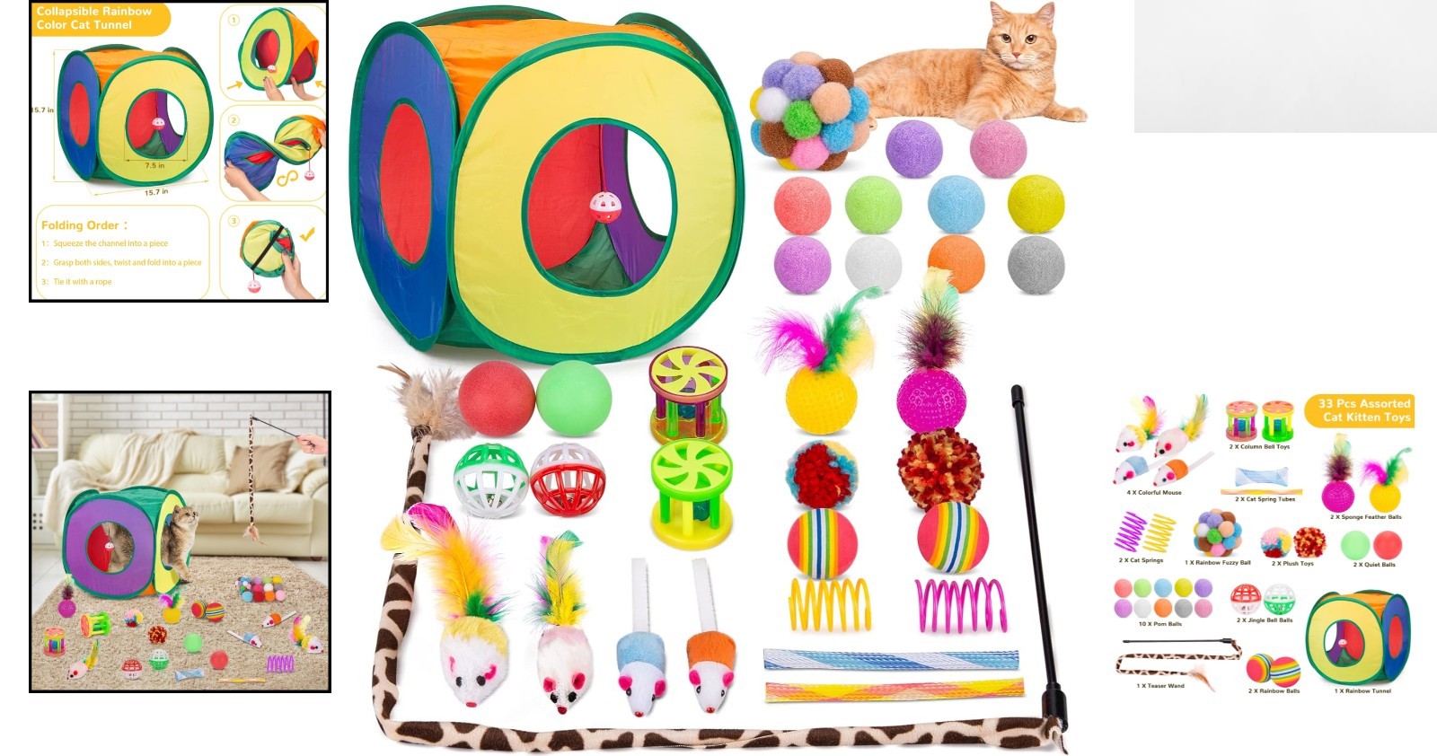 Included Components: 1 Pcs Cat Game Tunnel, 32 Pcs Kitten Toys Pack