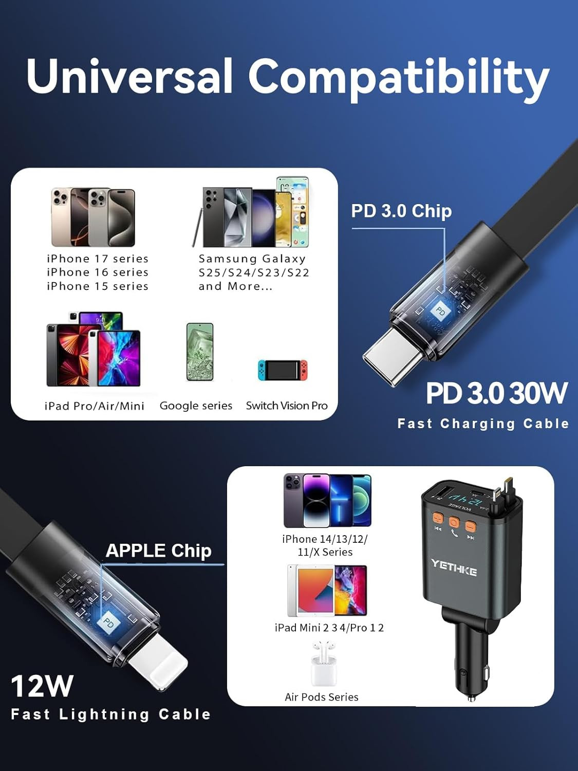Special Feature: Bluetooth 5.4, Fast Charging, Multi Device Charging, Retractable
