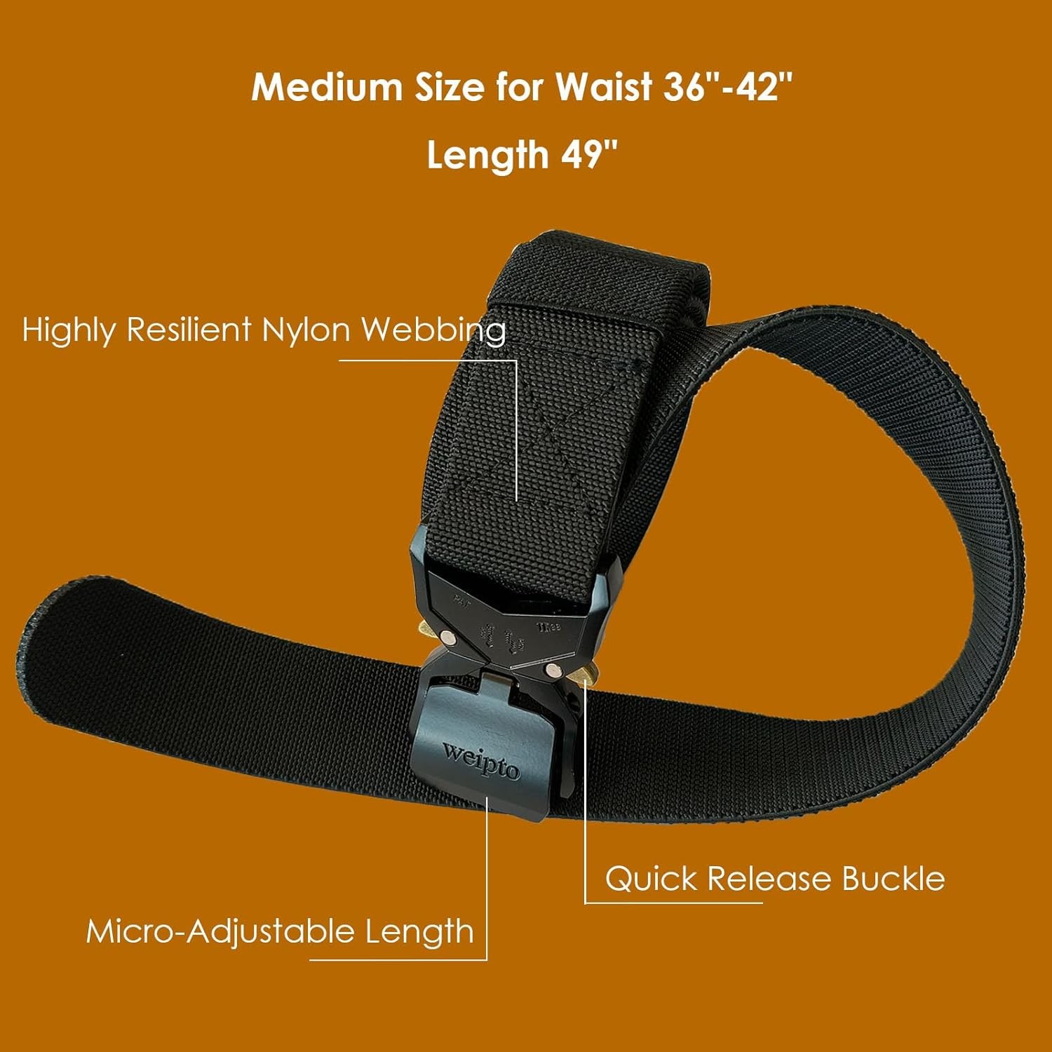 Tactical Belt, 1.5 Nylon Web Work Belt with Quick Release Buckle for Military,