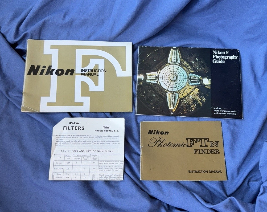 Nikon F 35mm SLR Camera W/ Extra Lens , Manuals, Original Leather Case