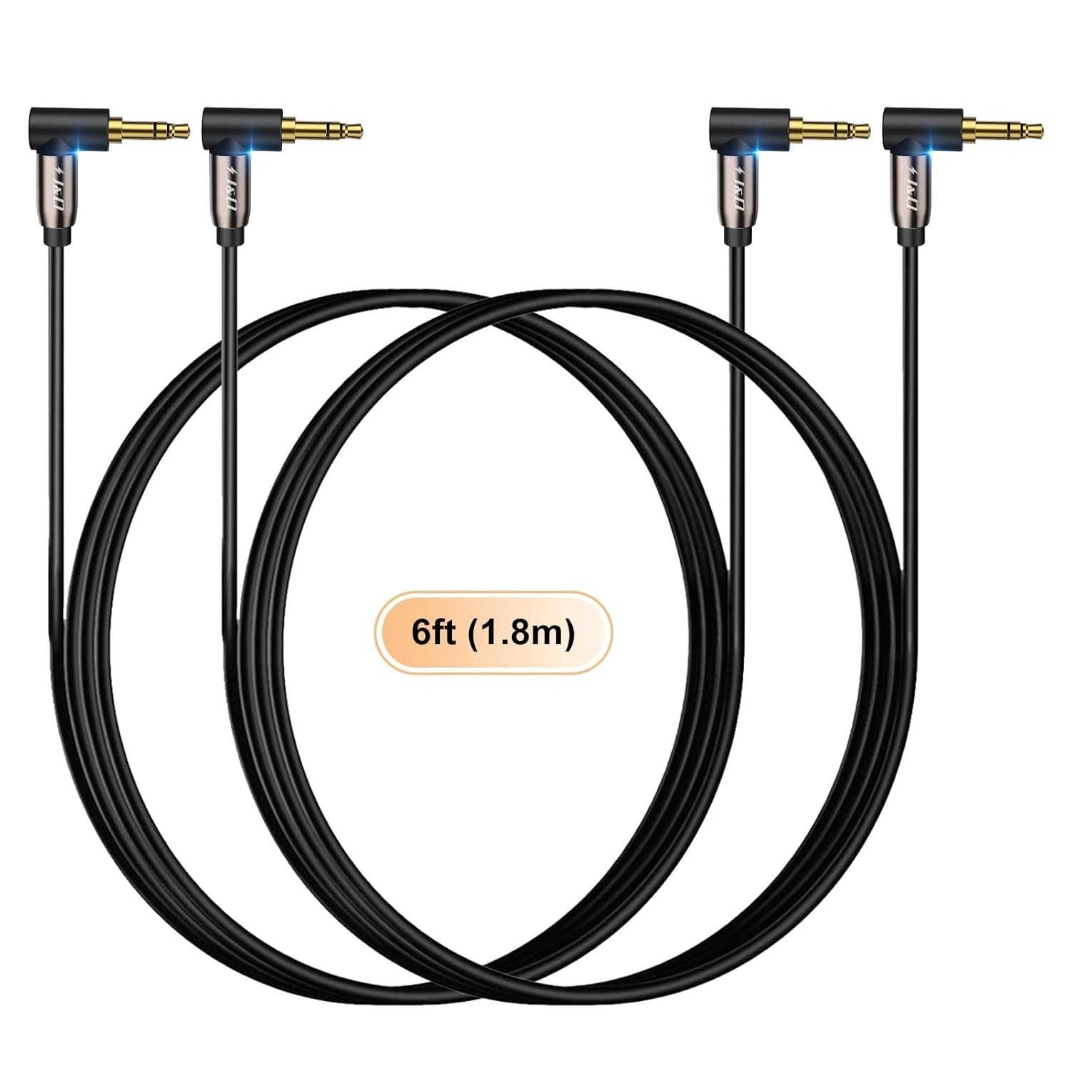 Flexible 6ft 3.5mm Right Angle Aux Cable 2 Pack - Perfect for Tight Spaces