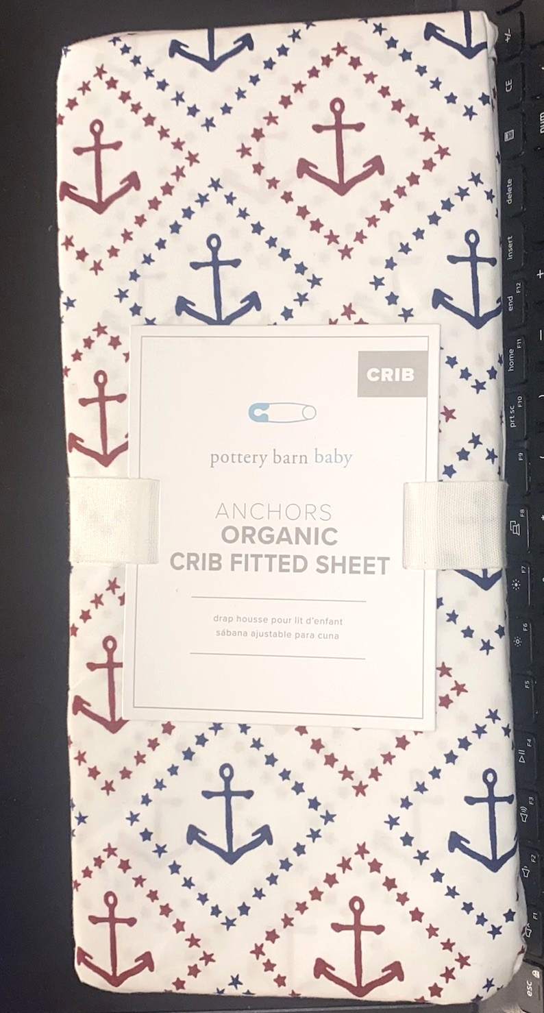 Pottery Barn Baby Organic Crib Fitted Sheet Anchors Nautical Red White Blue