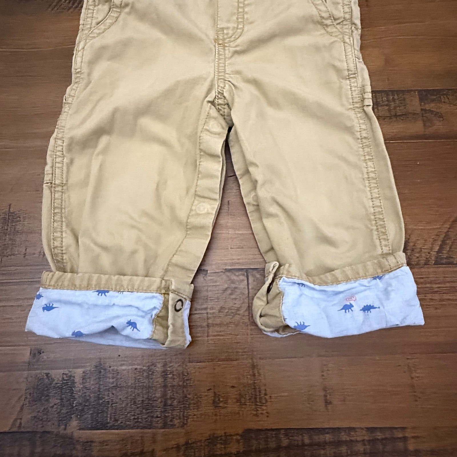 как выглядит OshKosh Bgosh Kids Tan Dinosaur Print Lined Overalls Size 24M фото