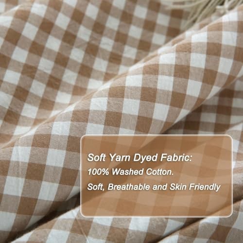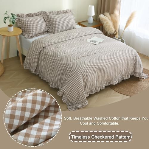 Ruffle Duvet Cover Size,100 Washed Cotton 3 Pcs Vintage King Taupe/White Plaid