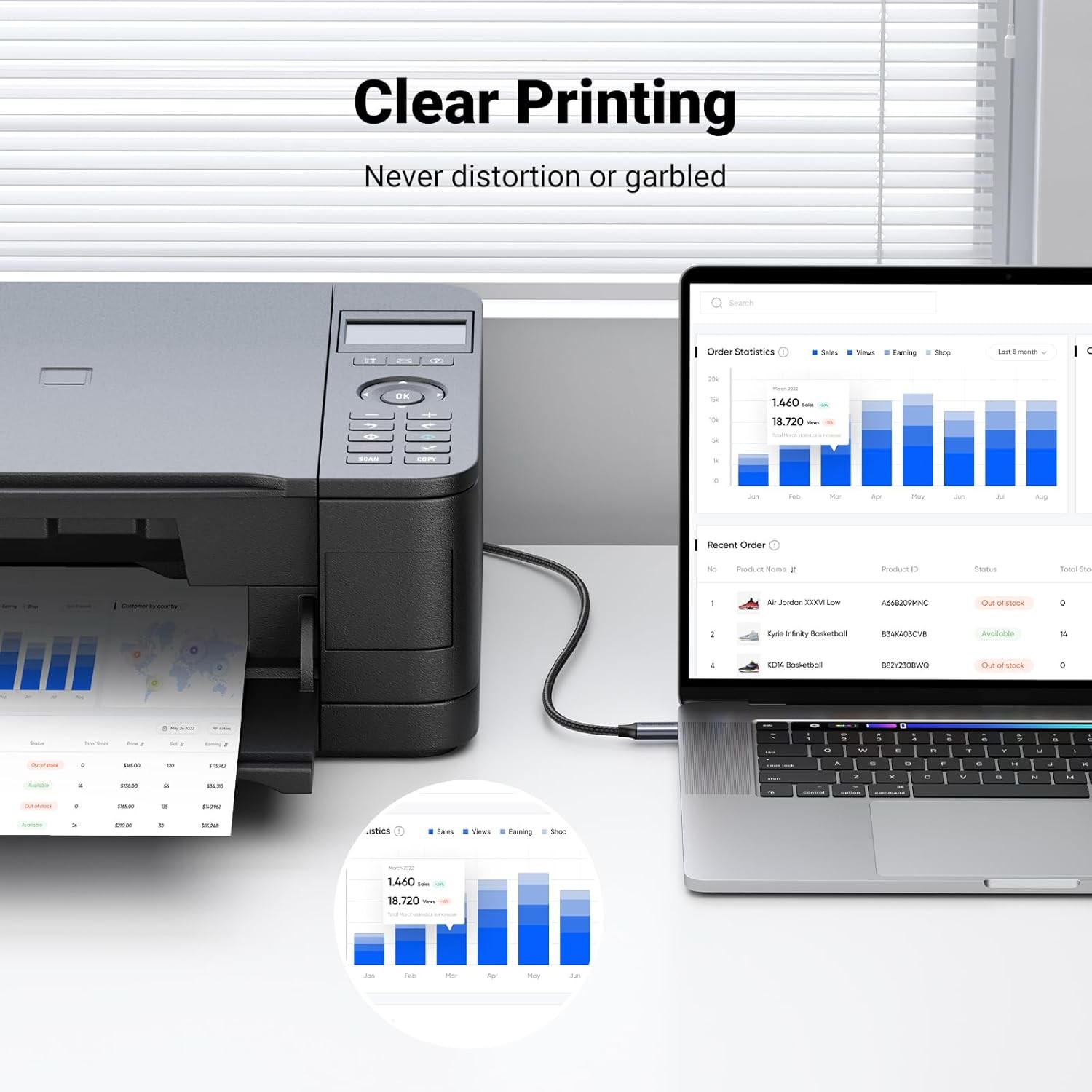 USB B to USB C 6 FT Printer Cable, Nylon USB B to C Cord for Macbook Pro/Air, MI