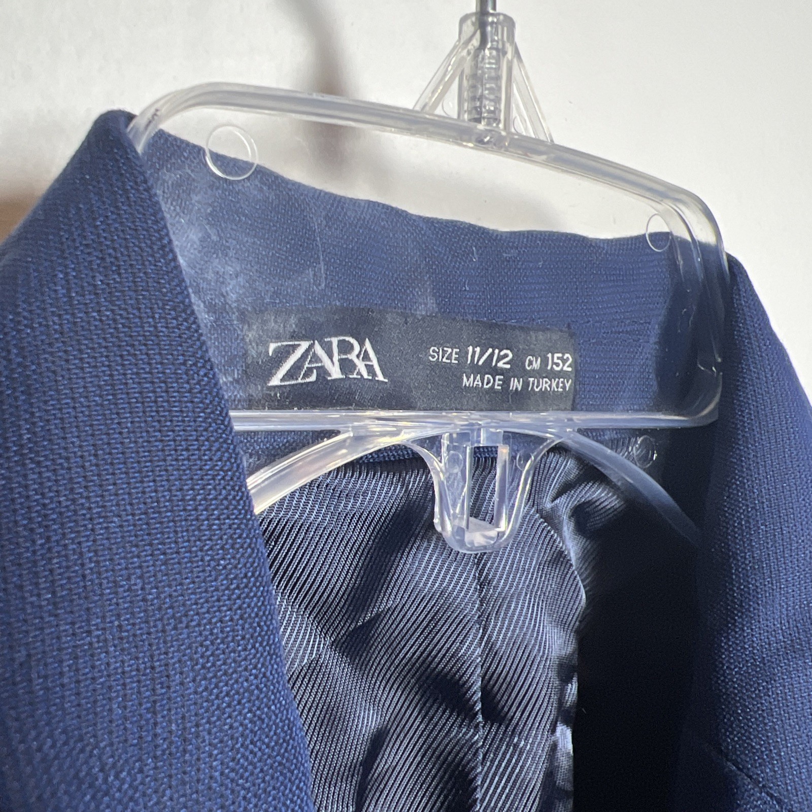 как выглядит ZARA Kids Suit Blazer Jacket Boys Size 11/12 Wool Blend Tailored Fit Blue фото