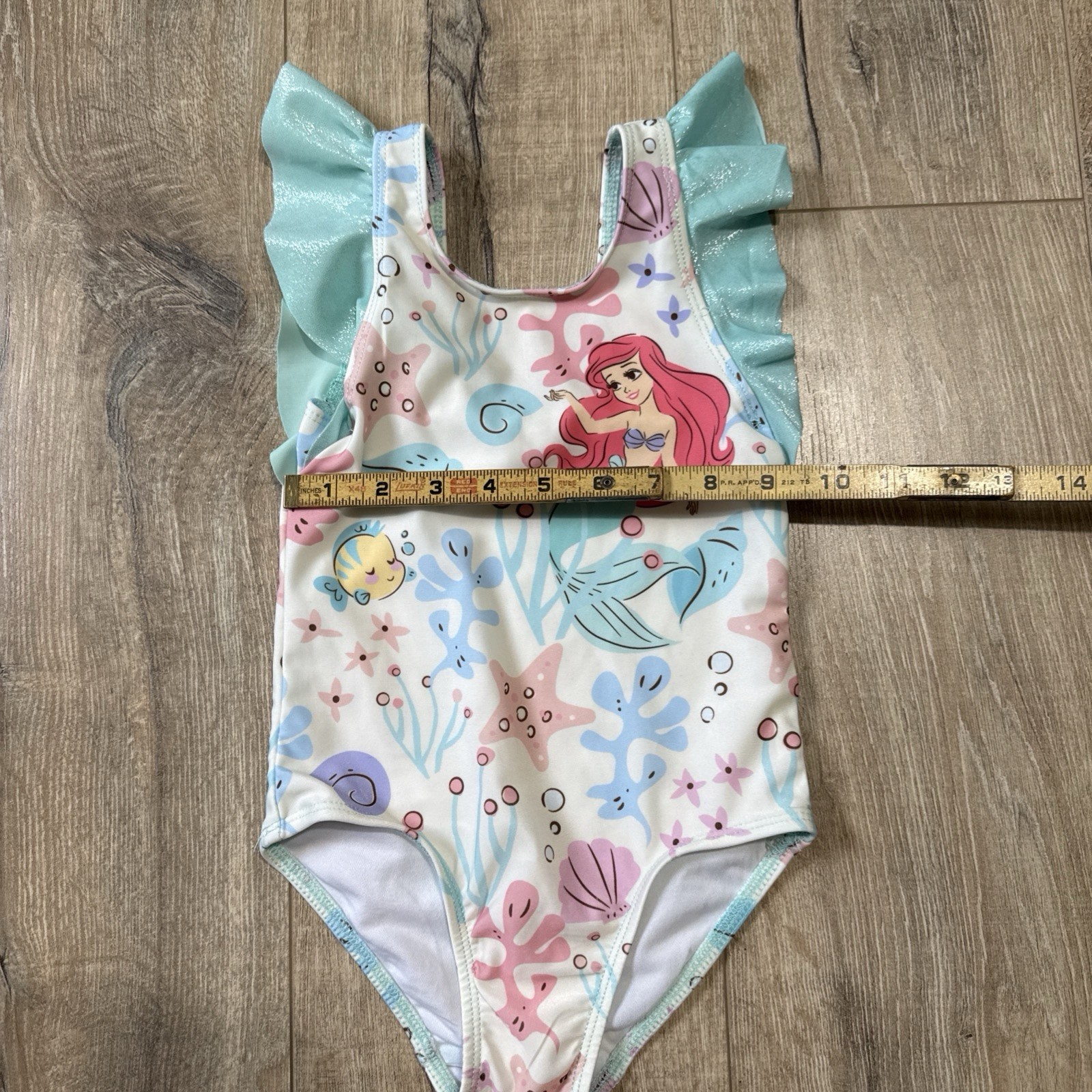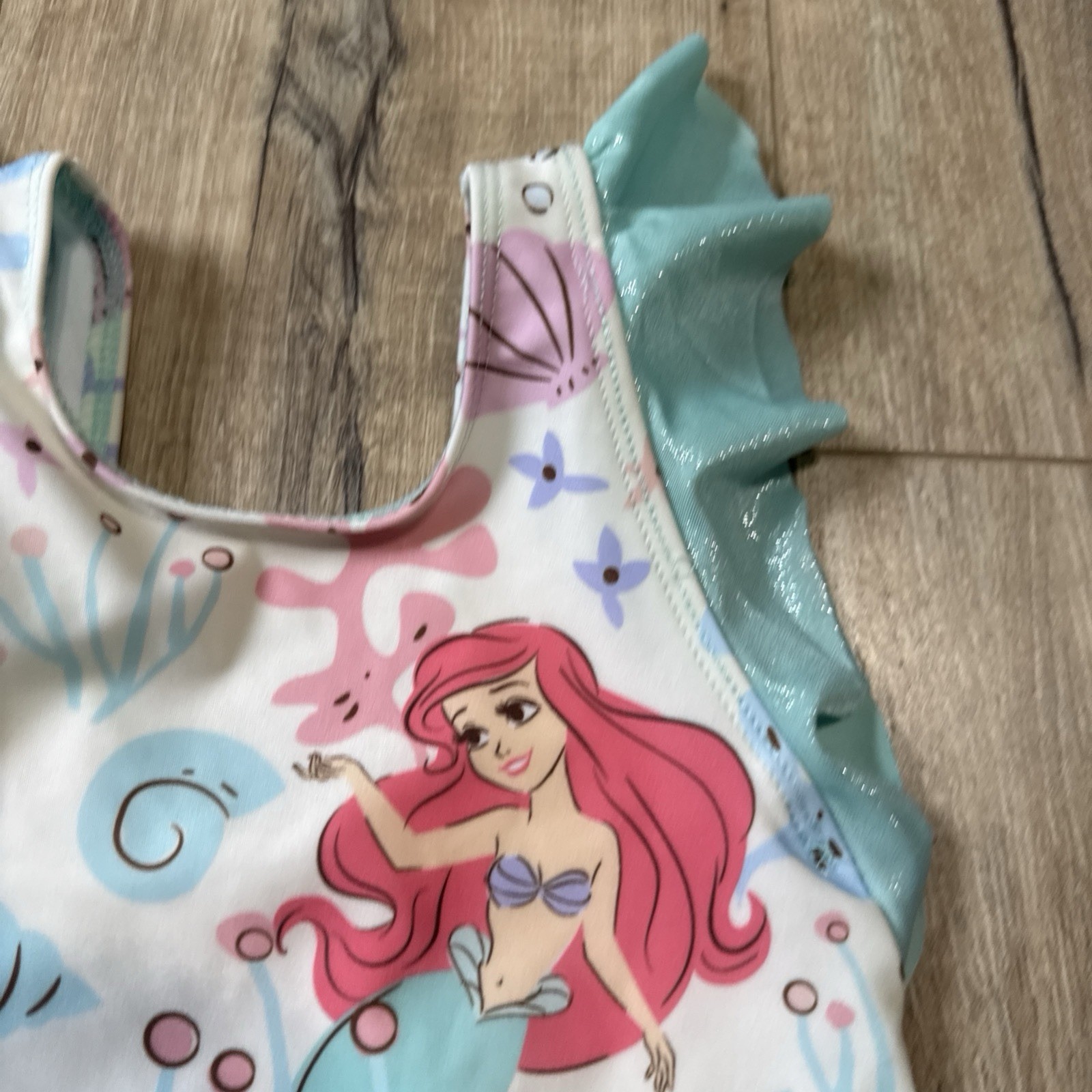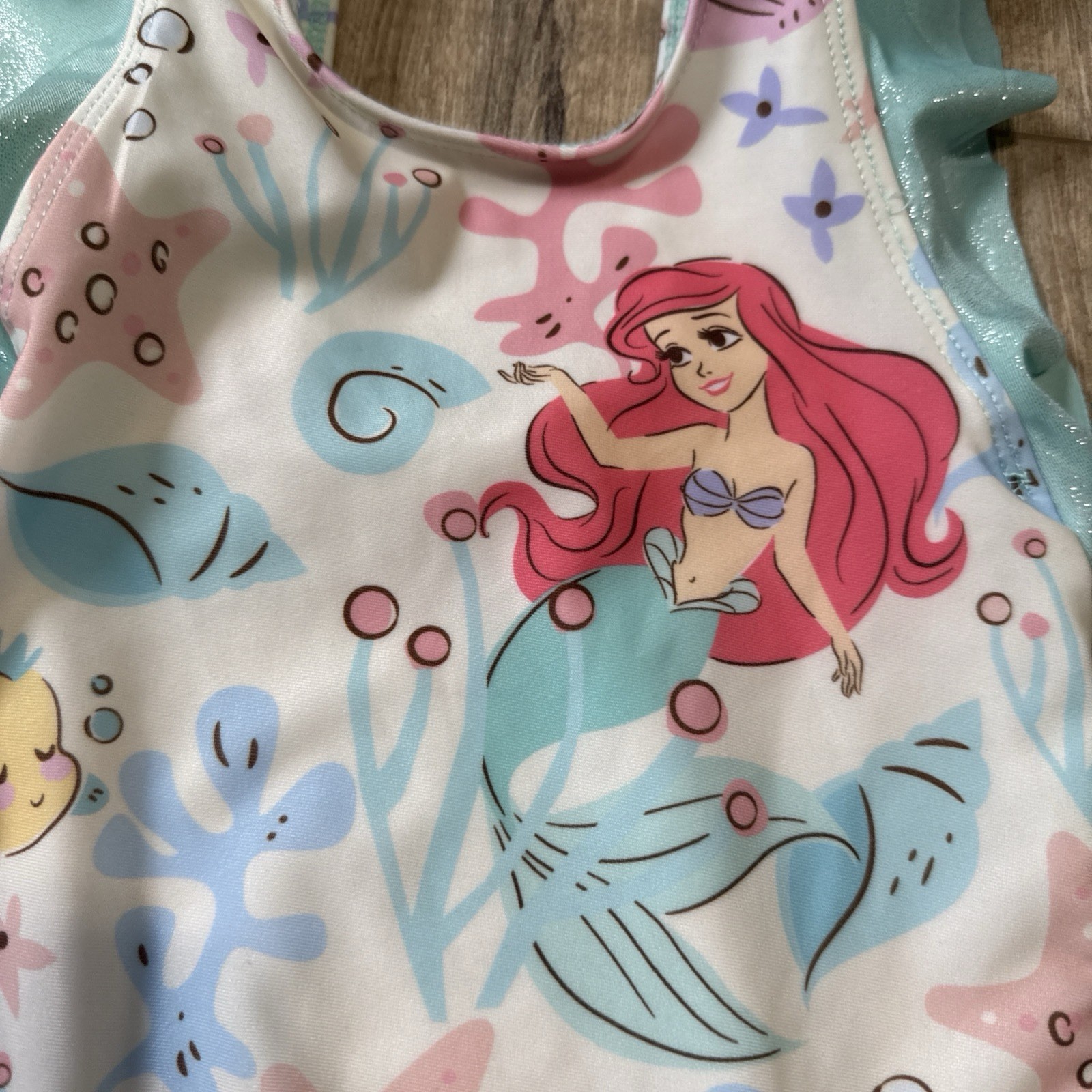 как выглядит Girls Disney Princess Ariel Little Mermaid One Piece Puff Sleeve Swimsuit 3T фото