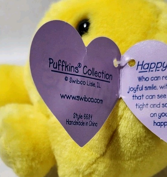 как выглядит Vintage Puffkins Happy Stuffed Yellow Plush Toy Smile Face фото