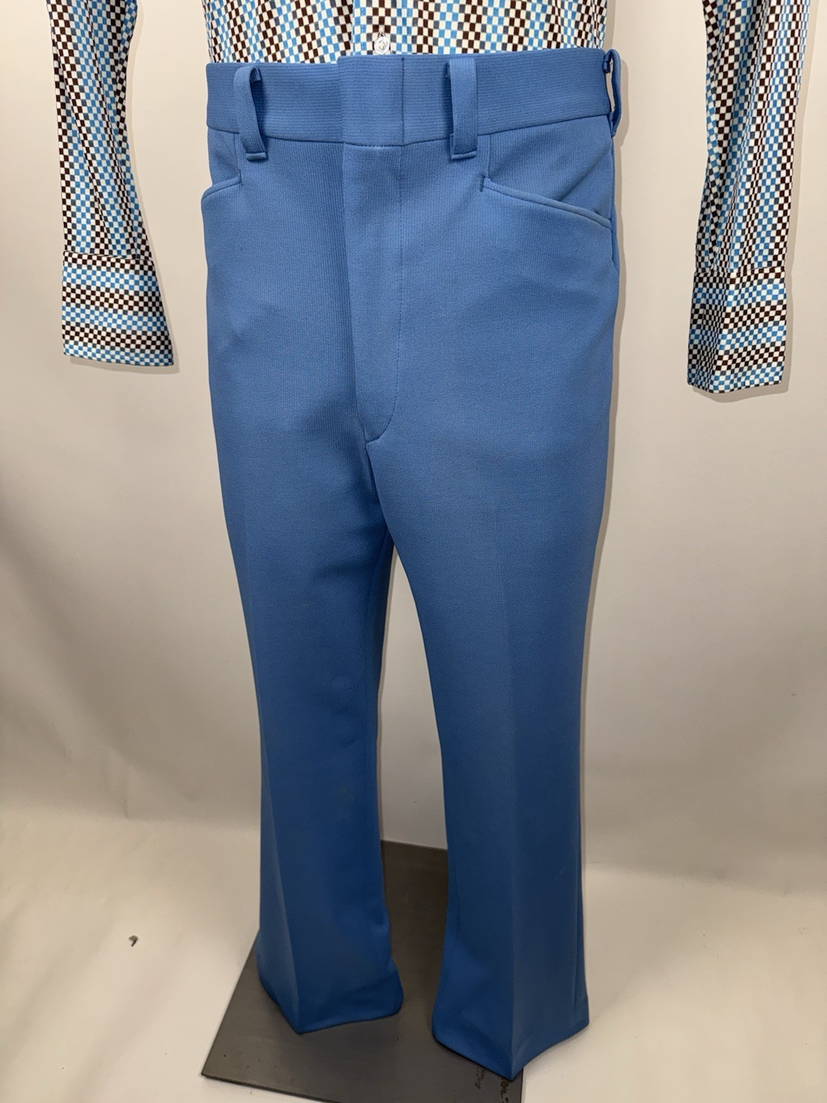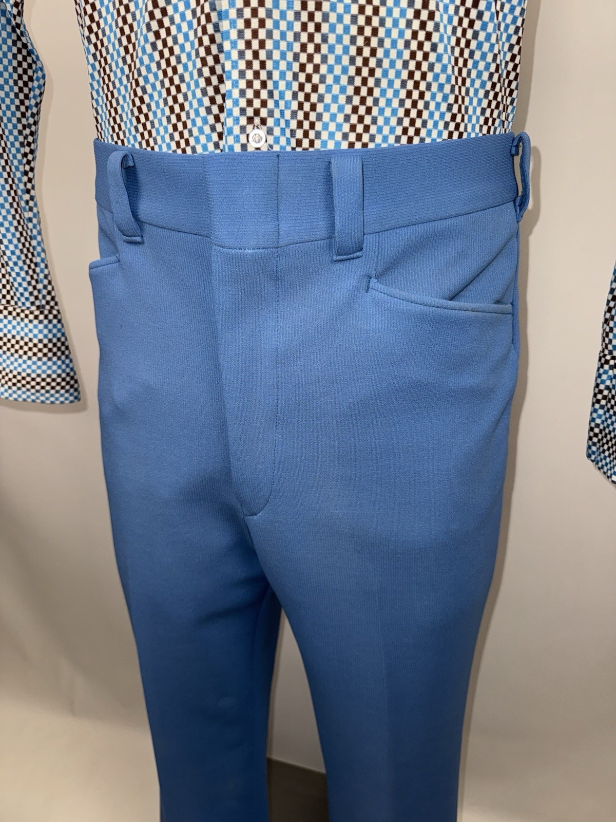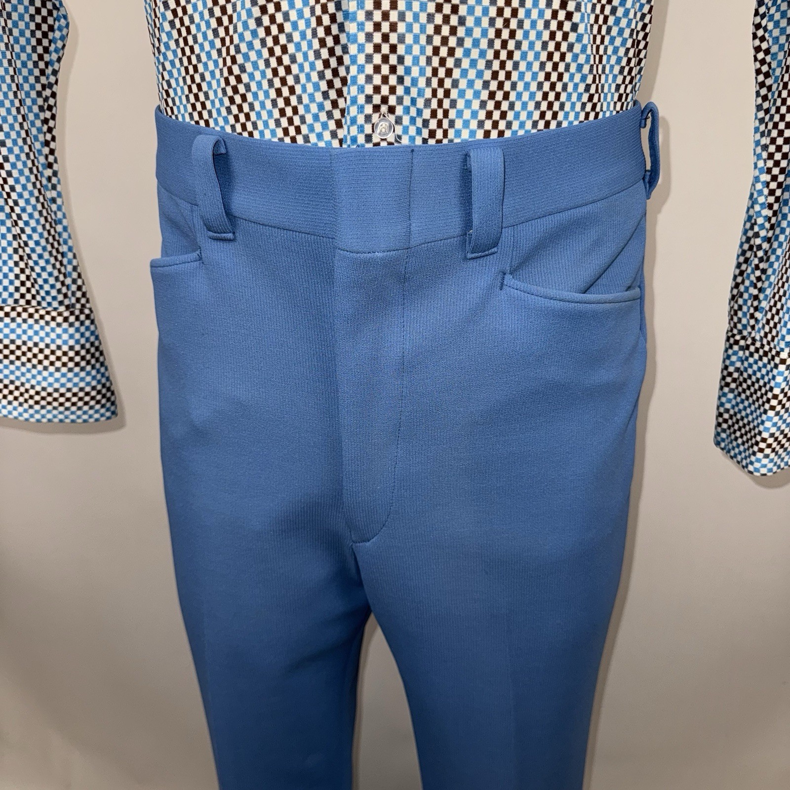 как выглядит Vtg 60s 70s Sears Pants Mens 36 32 Blue Polyester Leisure Suit Disco MCM Flare фото
