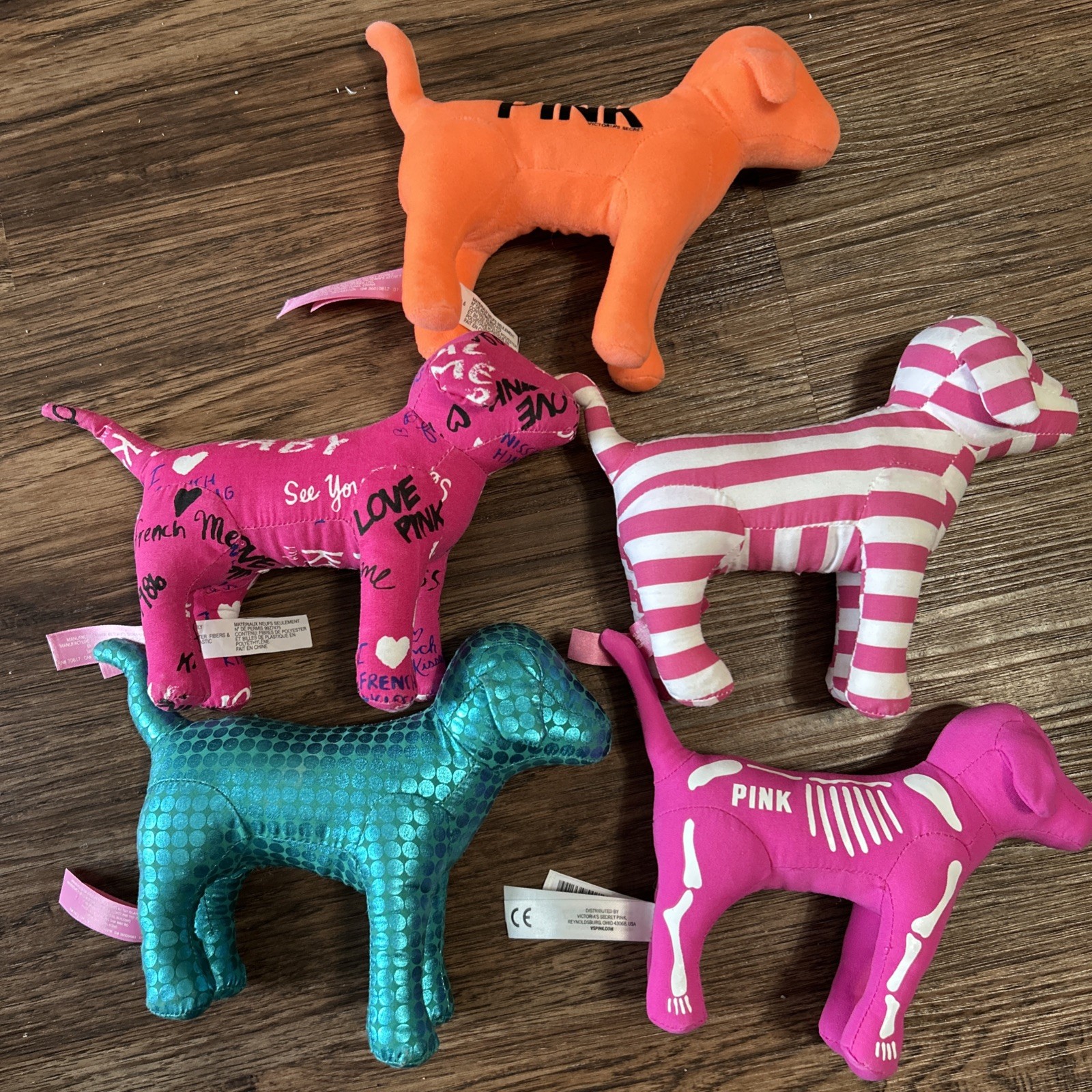 Victoria Secret PINK Lot Of 5 Plush Dog Blue Orange Pink LOVE PINK Victoria's VS