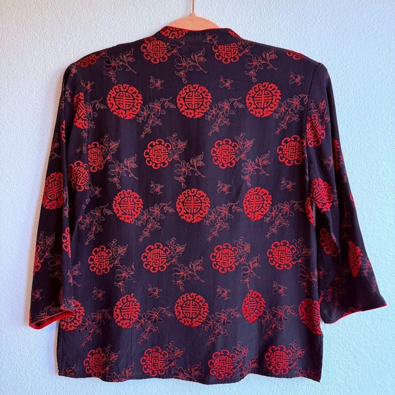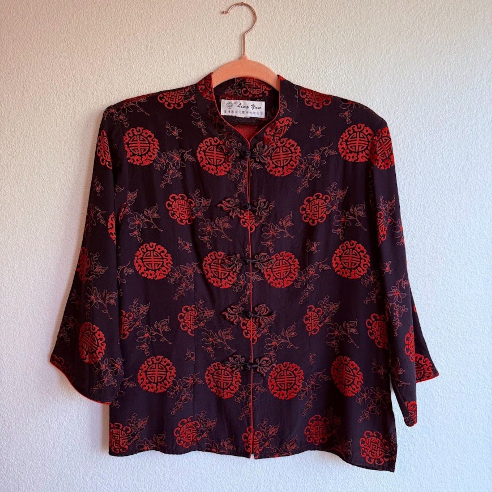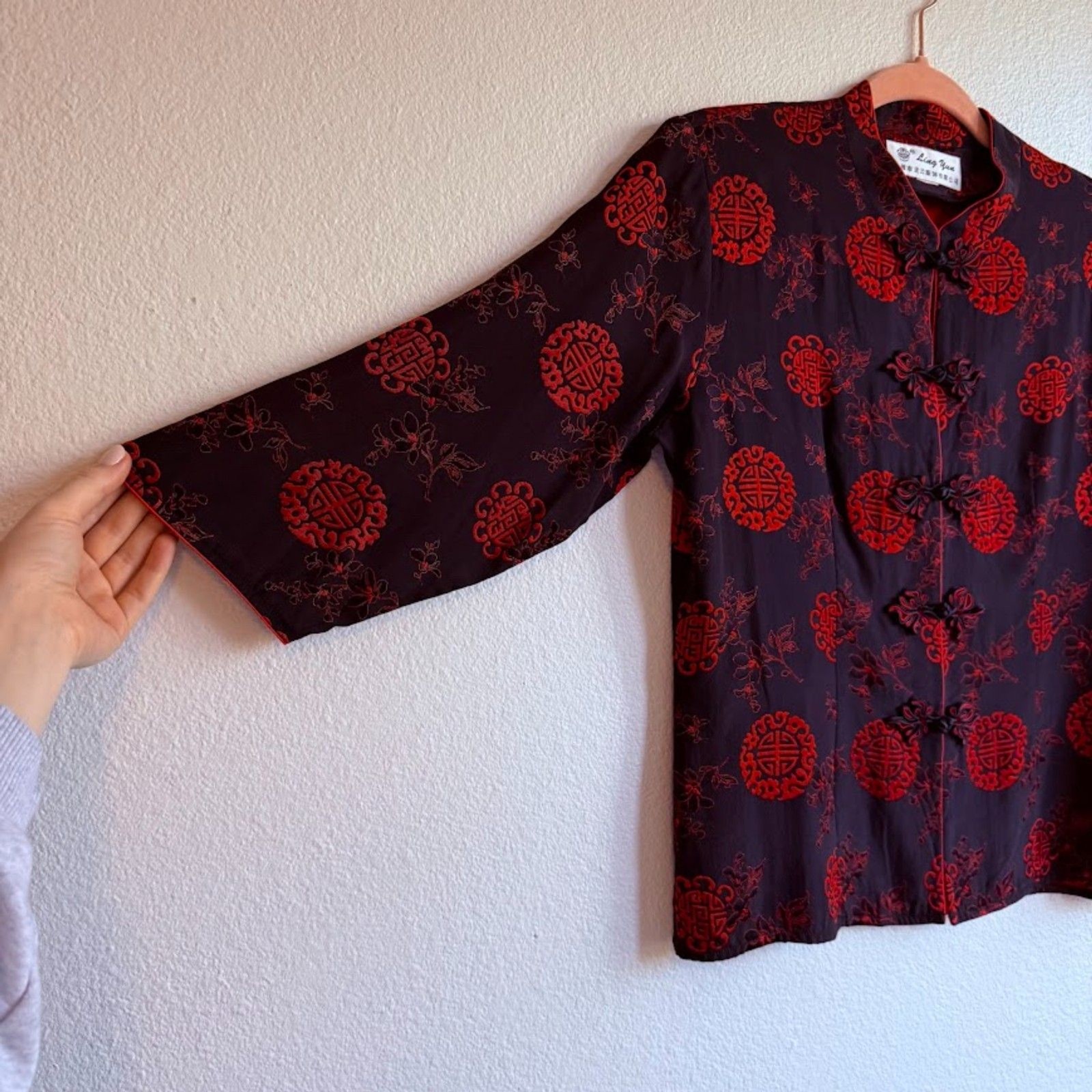 как выглядит Vintage Chinese Silk Brocade Mandarin Jacket with Frog Closures in Black Red фото