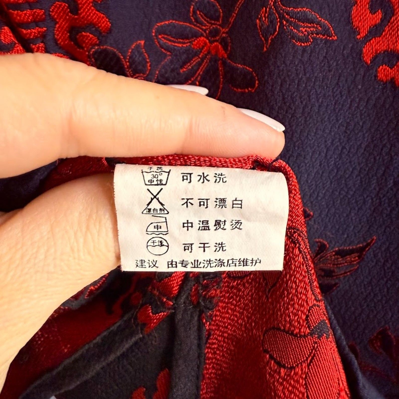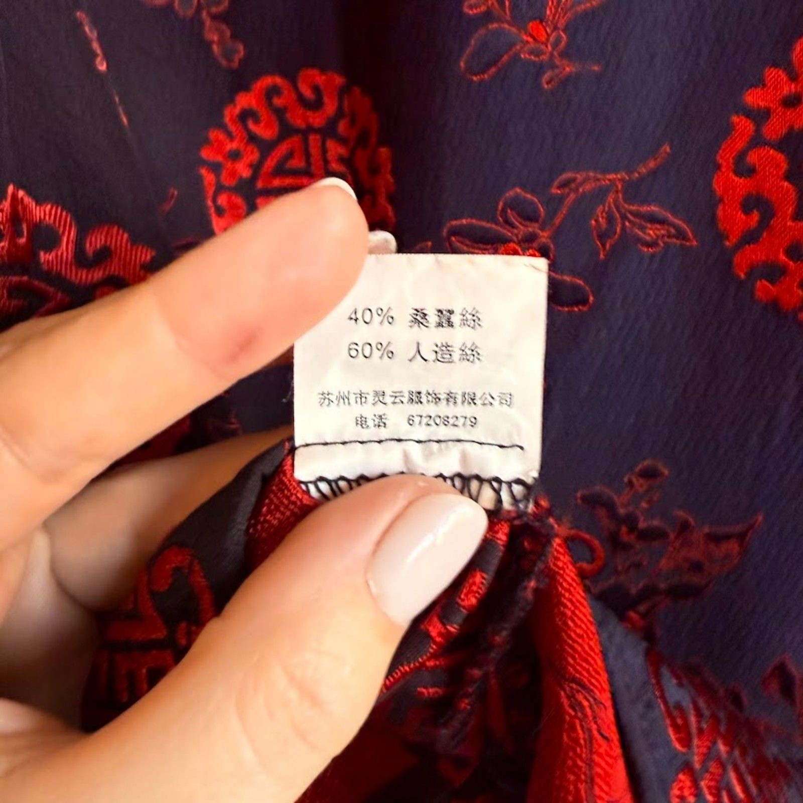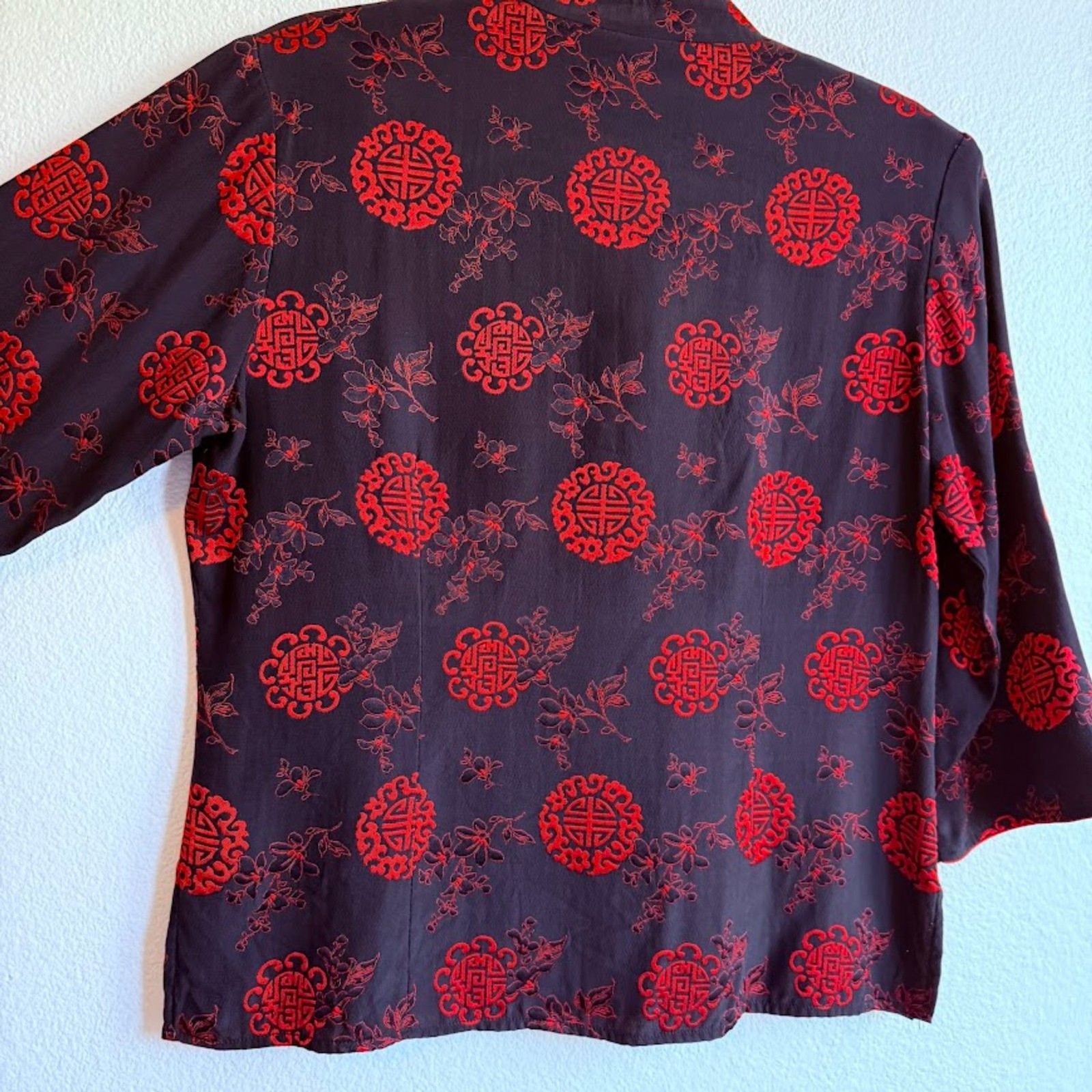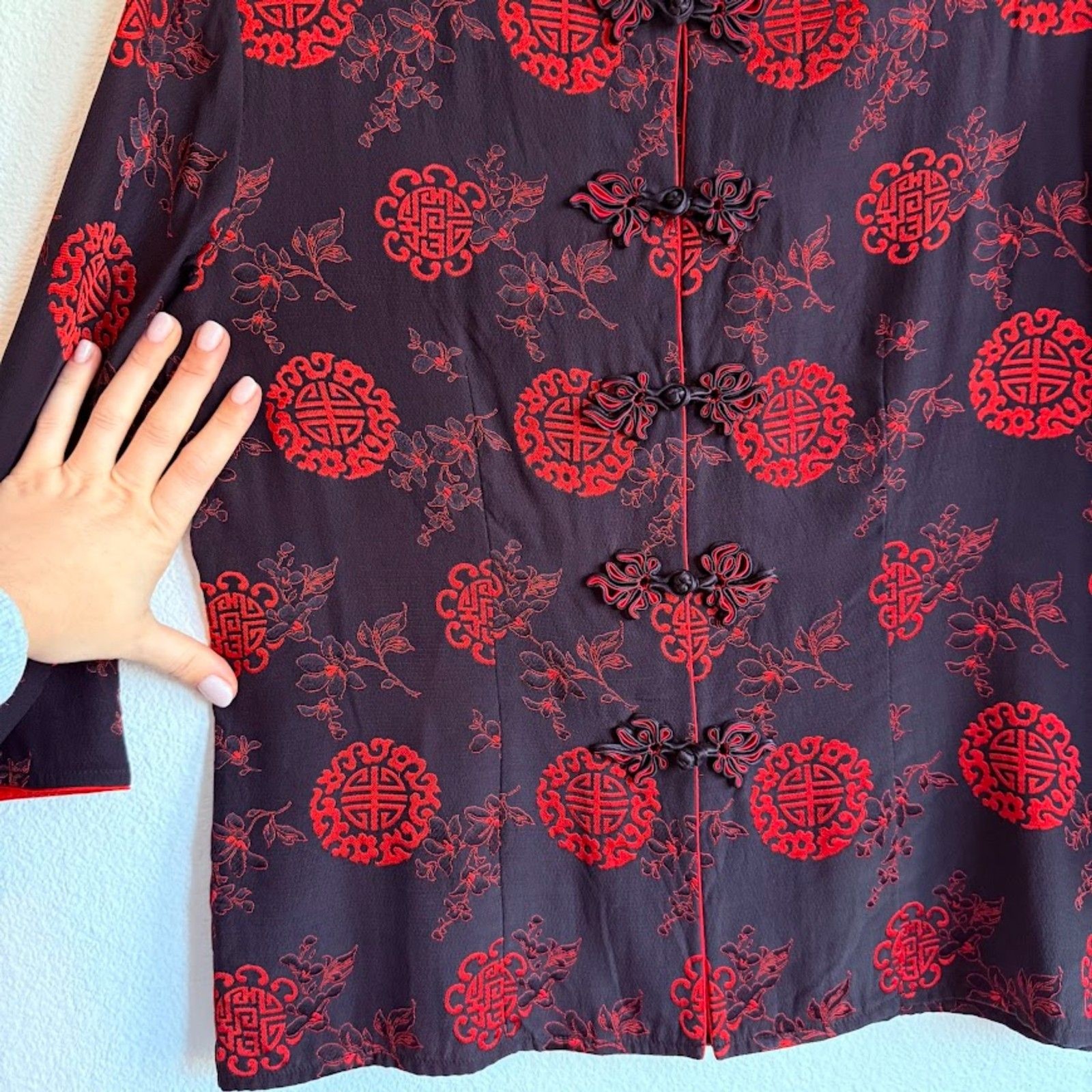 как выглядит Vintage Chinese Silk Brocade Mandarin Jacket with Frog Closures in Black Red фото
