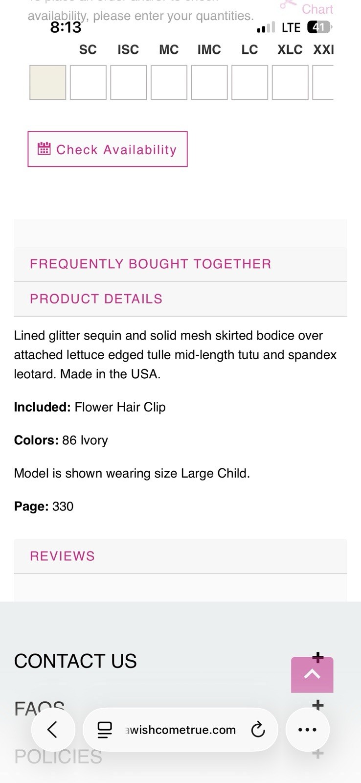 A Wish Come True Dance Costume 25386 Luminary Mid Length Tutu Adult Small