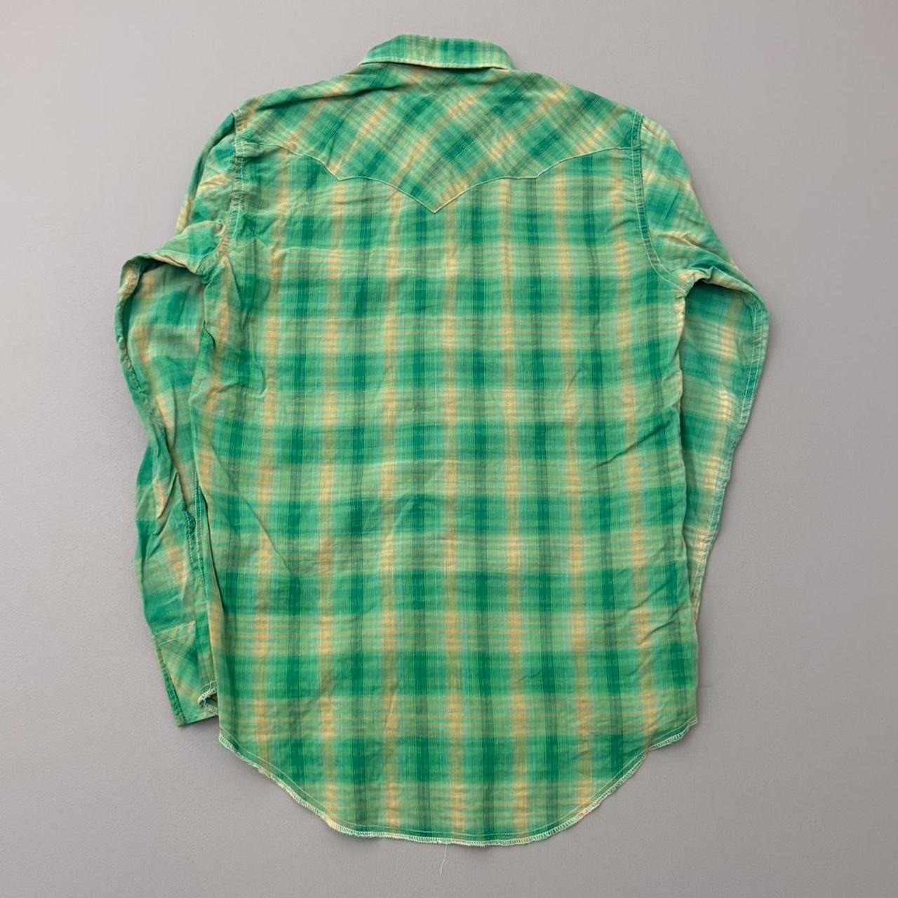 как выглядит Vintage 60s Plaid Pearl Snap Shirt Cotton Button Front Cowboy Western Size Med фото