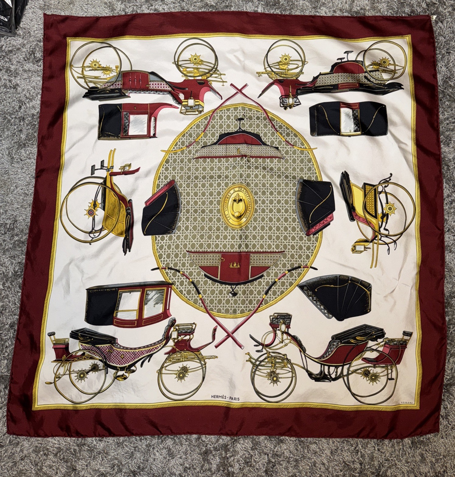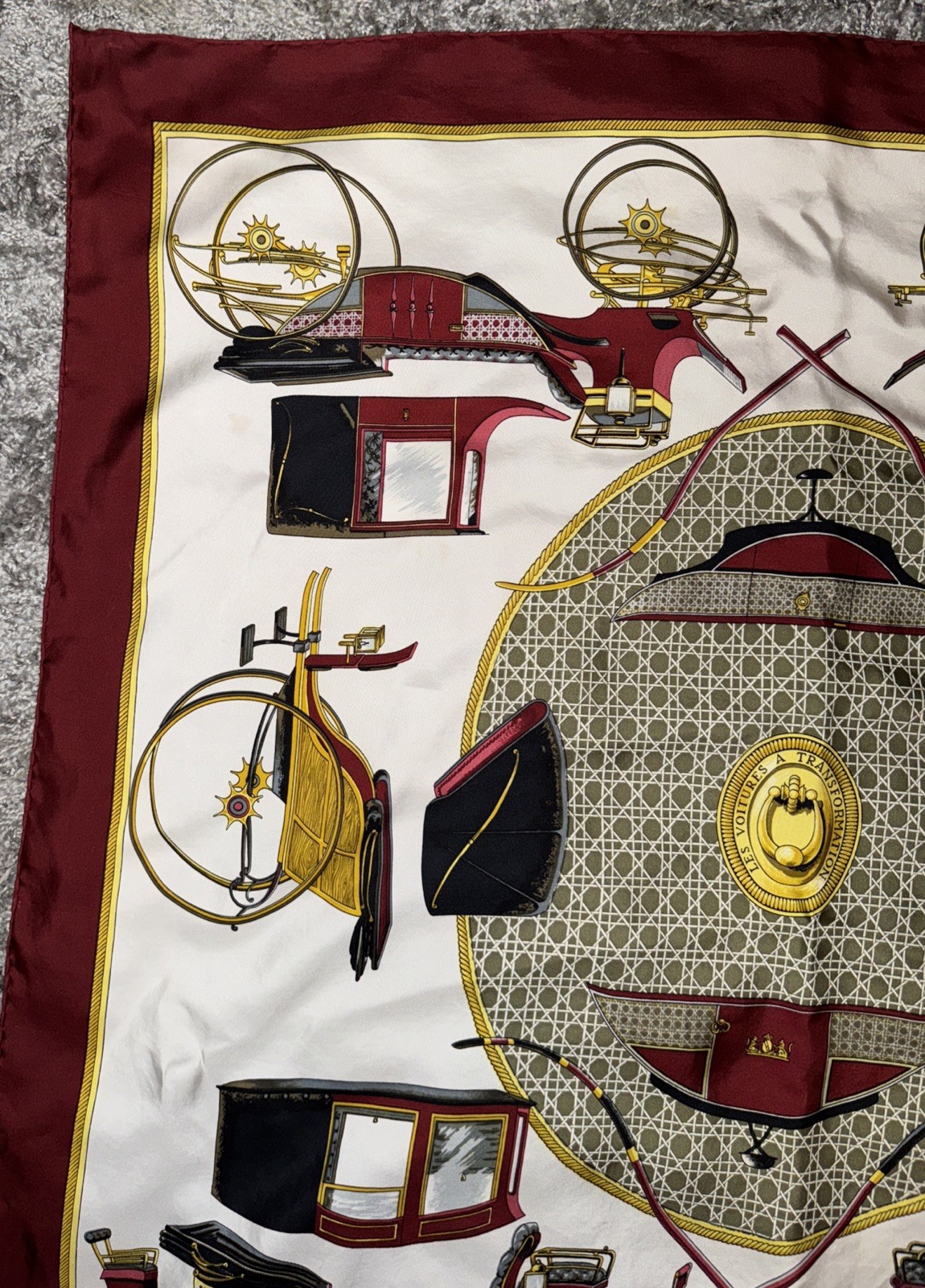 Herm s Paris Les Voitures A Transformation Silk Scarf 34 x 33 Vintage Carriage