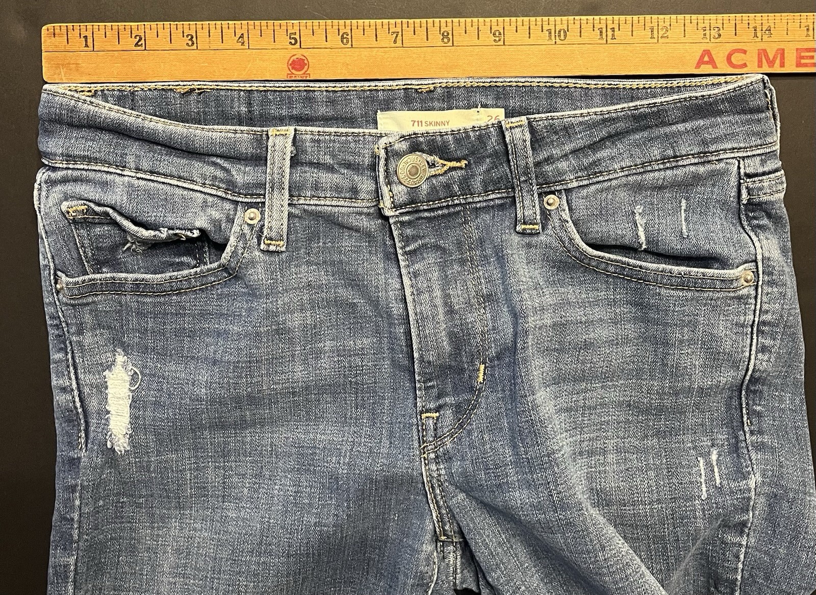 как выглядит Levis 711 Womens Skinny Blue Jeans Size 26 Distressed Light Wash Denim фото
