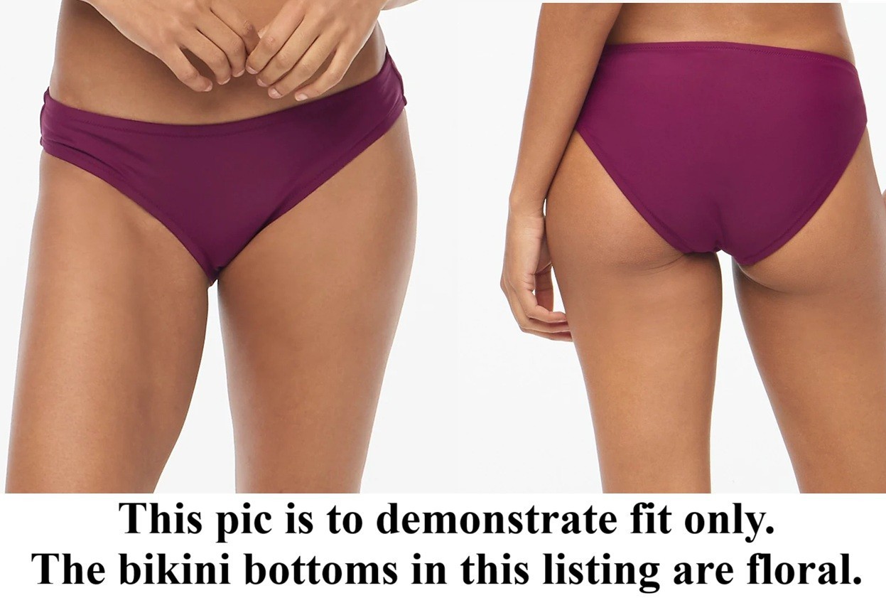 как выглядит J Crew French Bikini Bottom M Low Rise Stretch Floral Pink Red Beach Cruise NEW фото