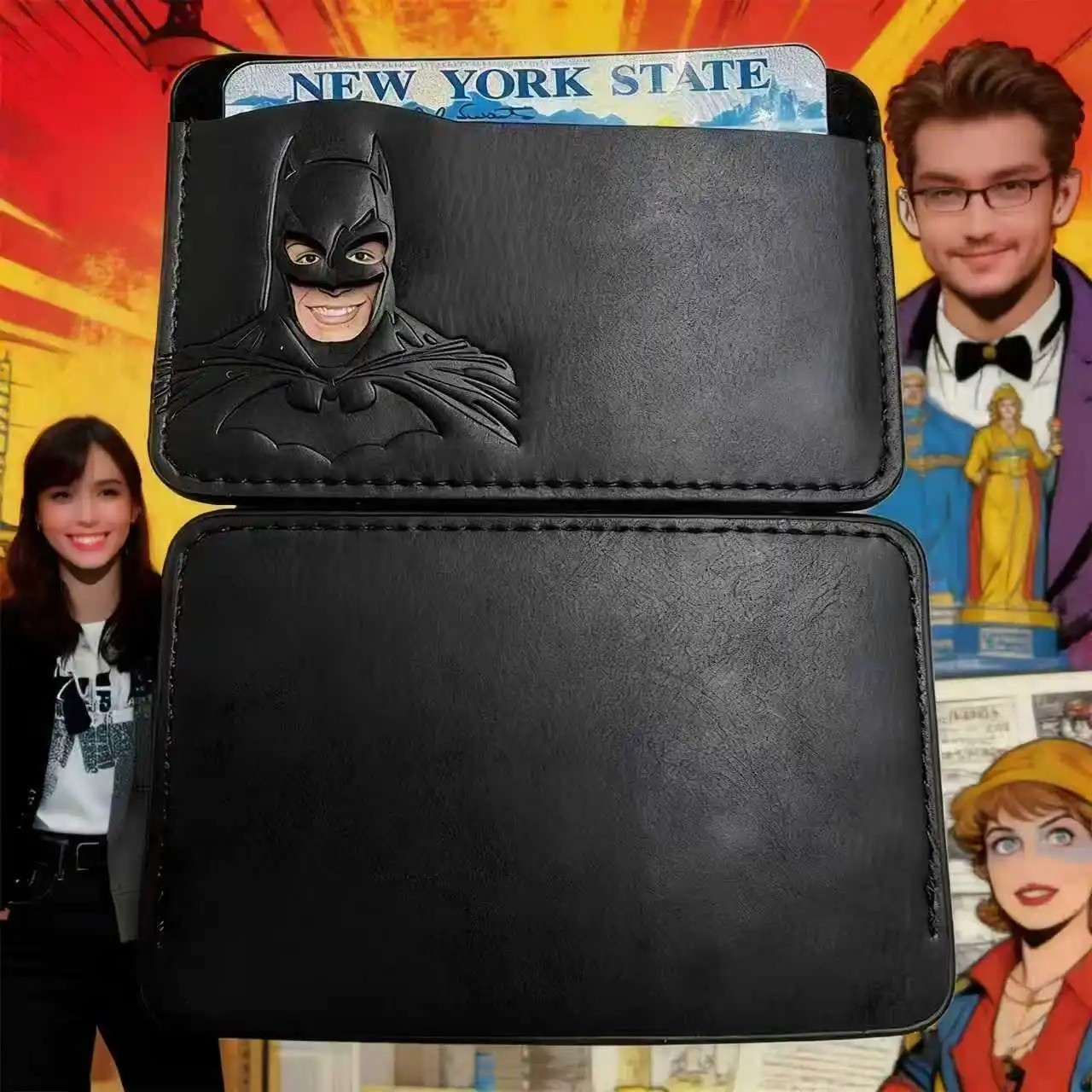Personalized Leather Bat Wallet Superhero Mask Card Holder Heroic ID Wallet