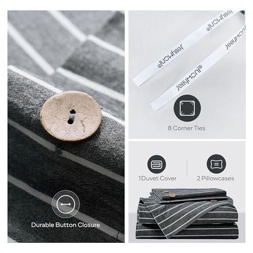 Cotton Duvet Cover Queen Size - Gray Queen 90 90 03- Gray Pinstripe