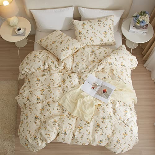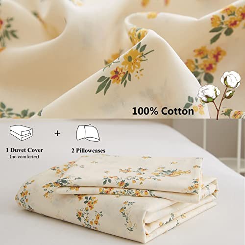 Yellow Floral Duvet Cover Full 3 Pieces Cotton Girls Full 80 x 90 F Wendy