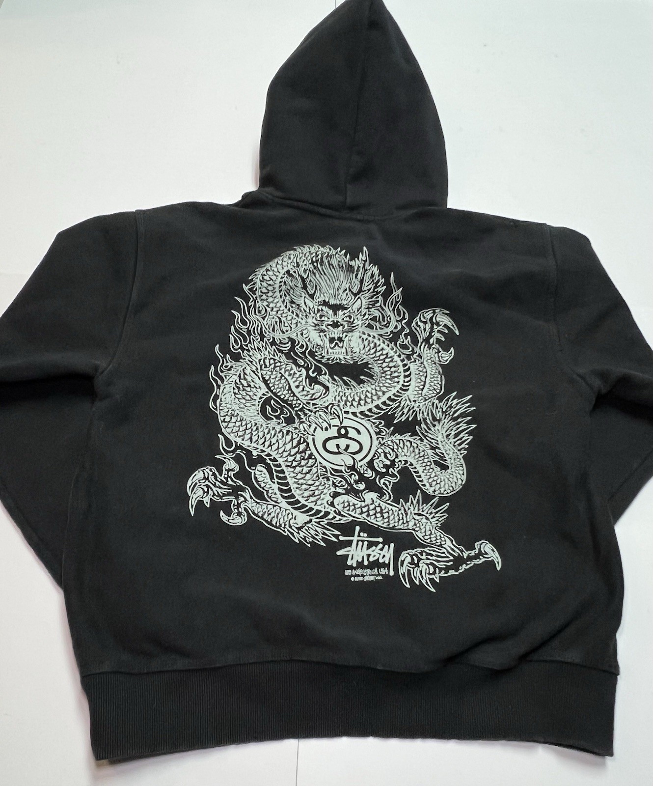 как выглядит Stussy Dragon Hoodie Mens Large Black Pullover Streetwear Y2K Skate фото