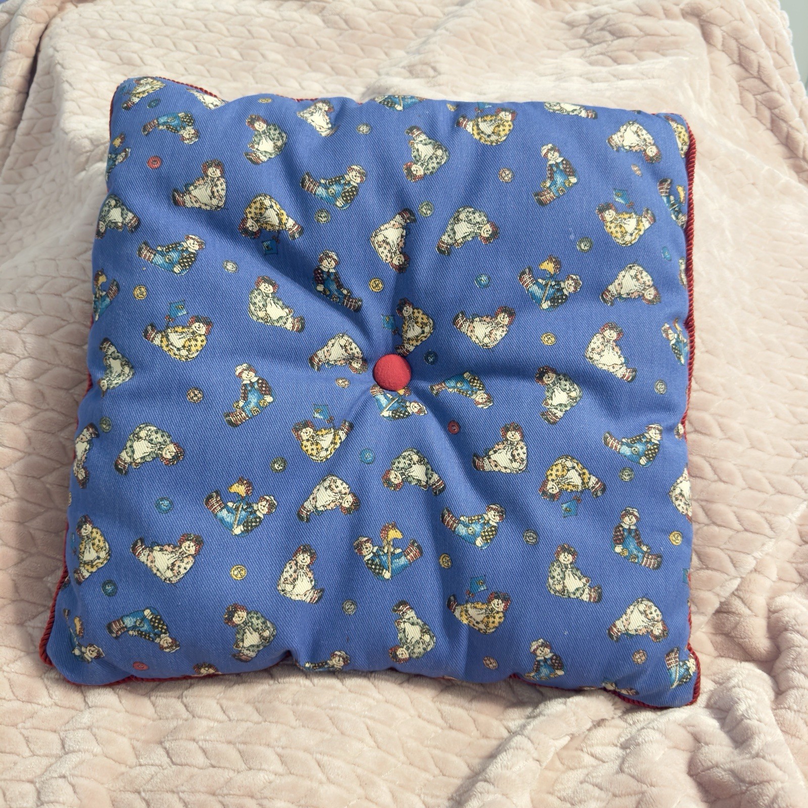 Vtg Raggedy Ann Andy Pillow 15 Handmade Red Trim Button Center