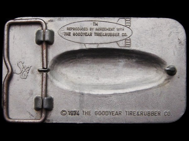 JB15155 VINTAGE 1974 GOODYEAR TIRE RUBBER CO. PEWTER BLIMP BELT BUCKLE