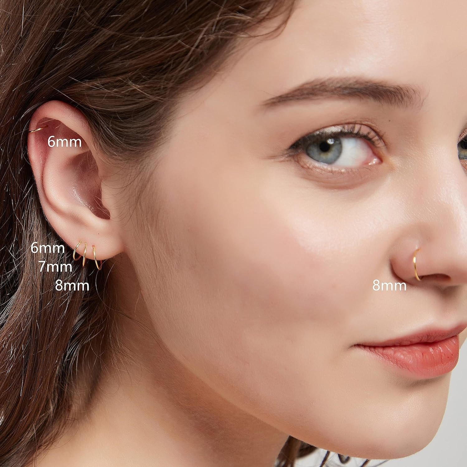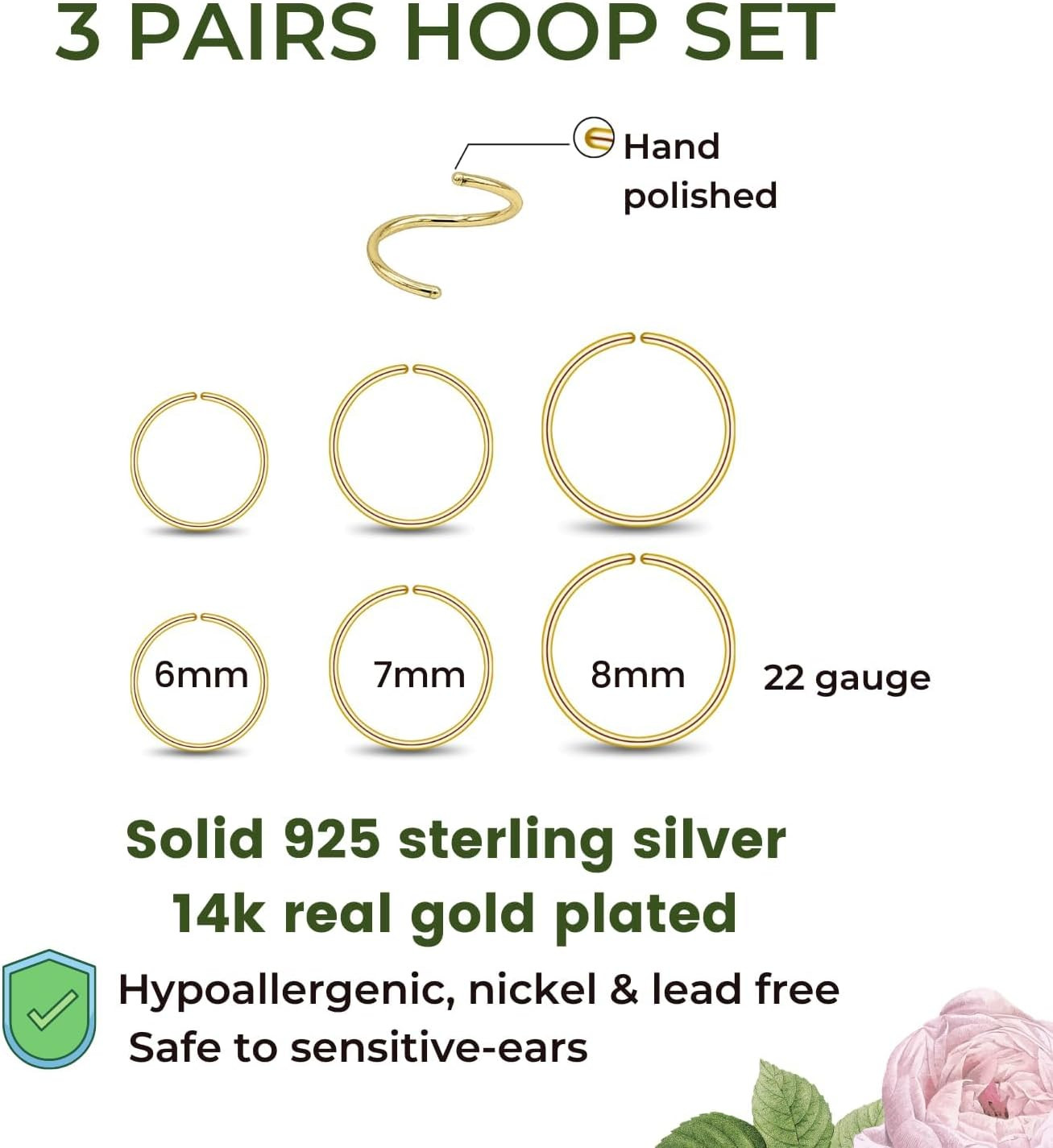 3 Pairs 14K Gold Plated Sterling Silver Small Hoop Earrings Set for Women Cartil