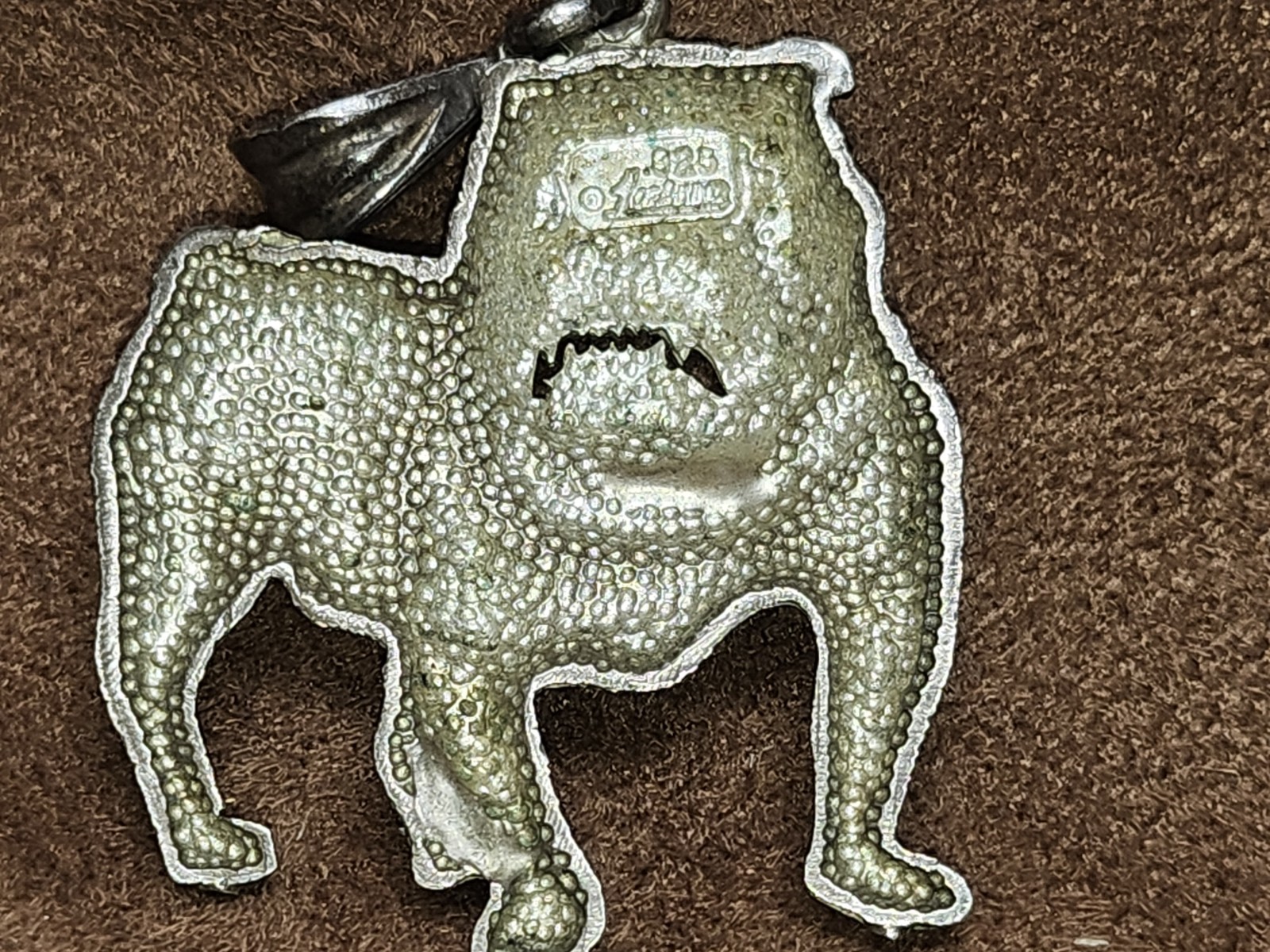как выглядит Sterling Silver 925 1 Of A Kind Bulldog Pendant Animal Charm with Bezel фото