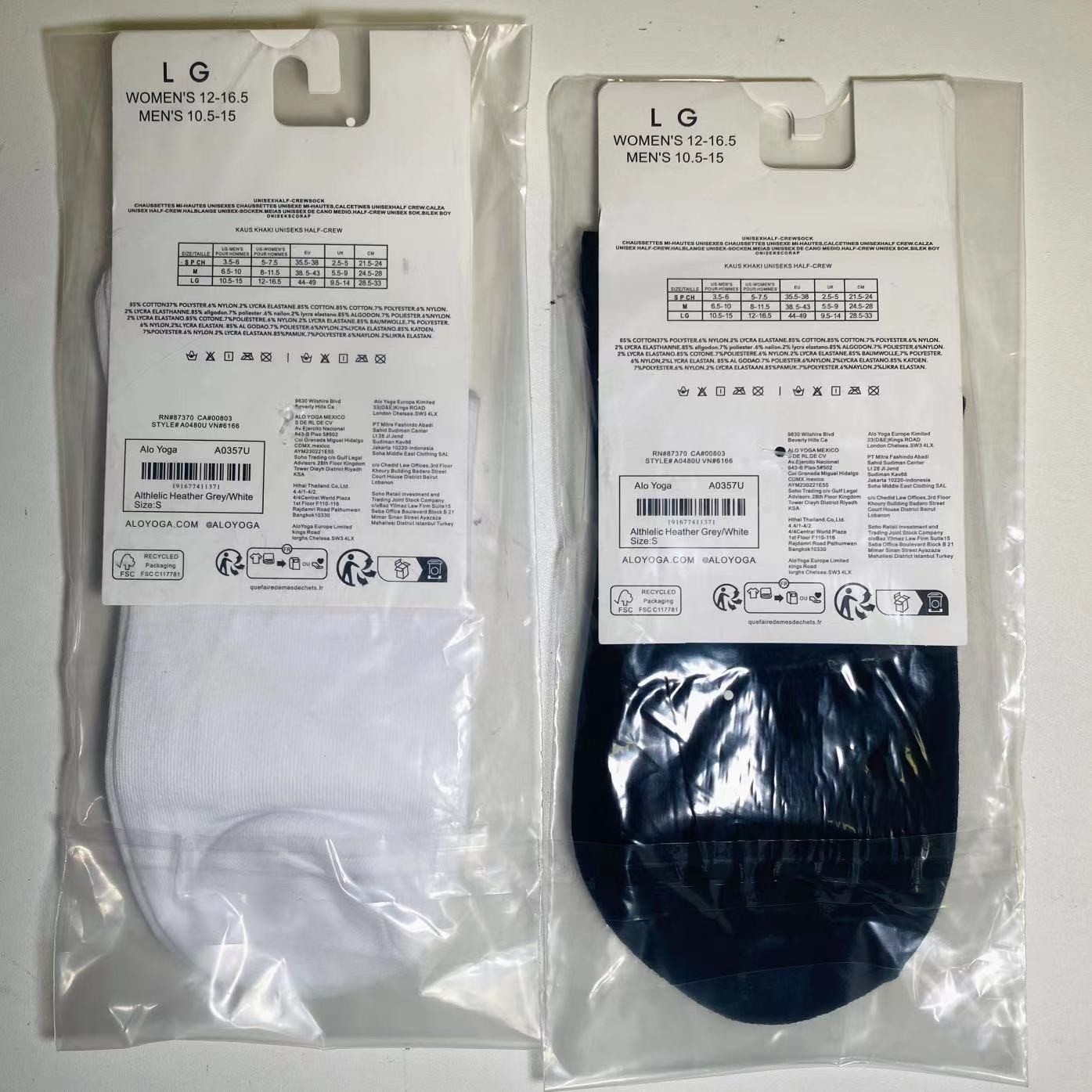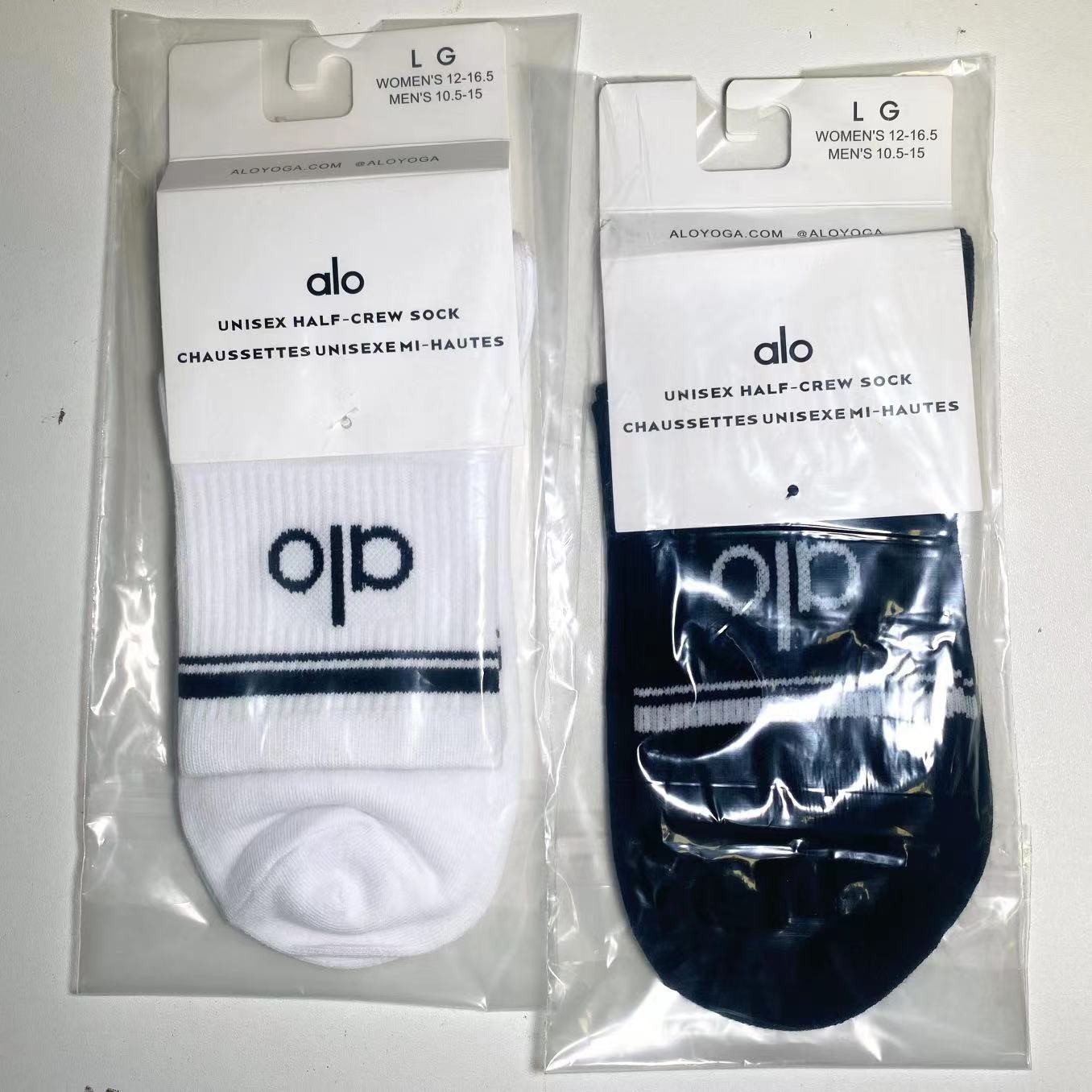 Alo Yoga Unisex Crew Socks Combo 2 Pairs, White and Black - New in Pack Size S