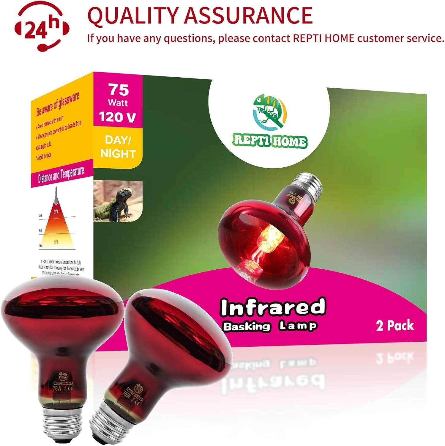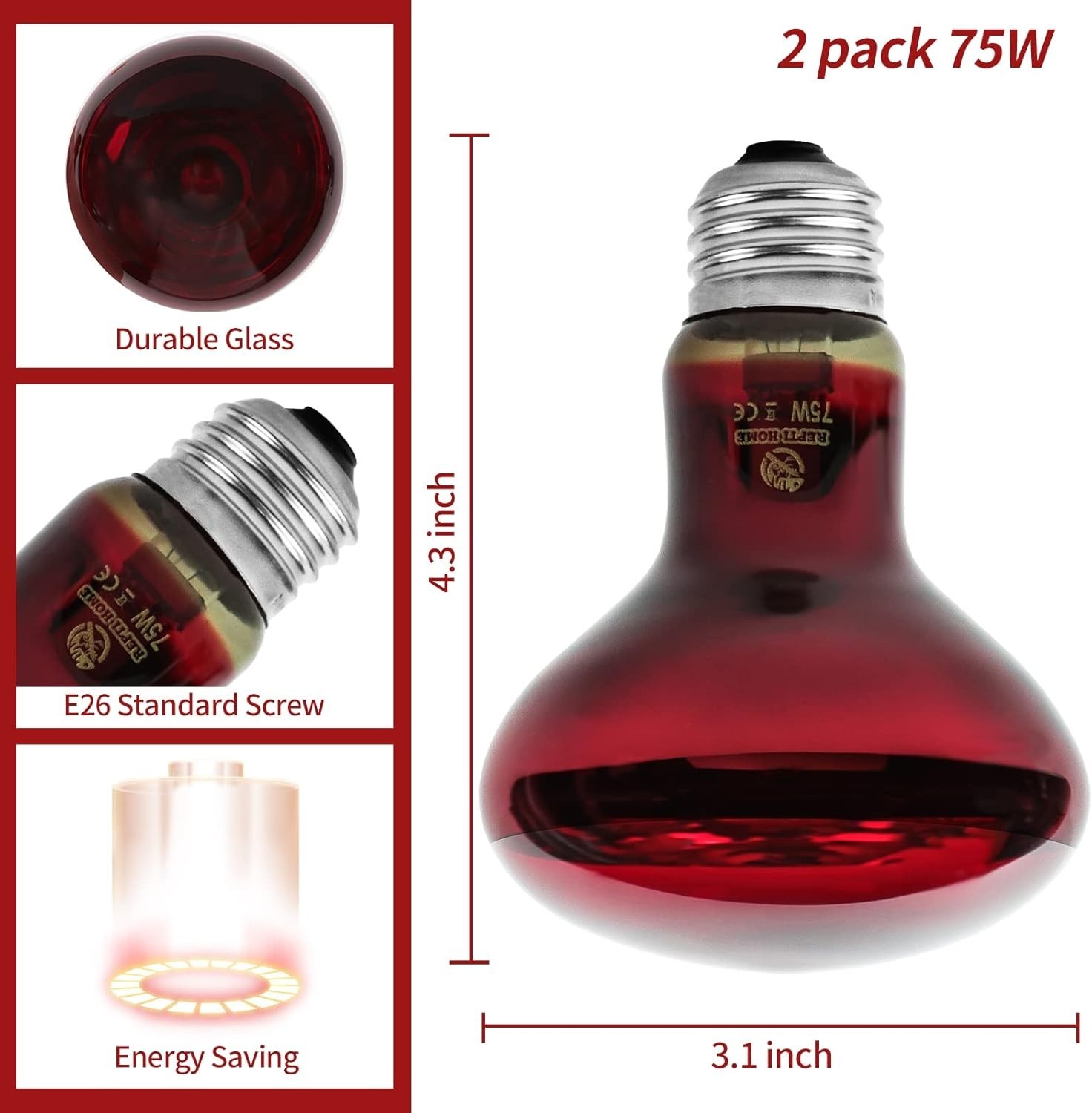 2 Pack Infrared 75W Red Heat Emitter Bulbs - Ideal for Reptiles Amphibians