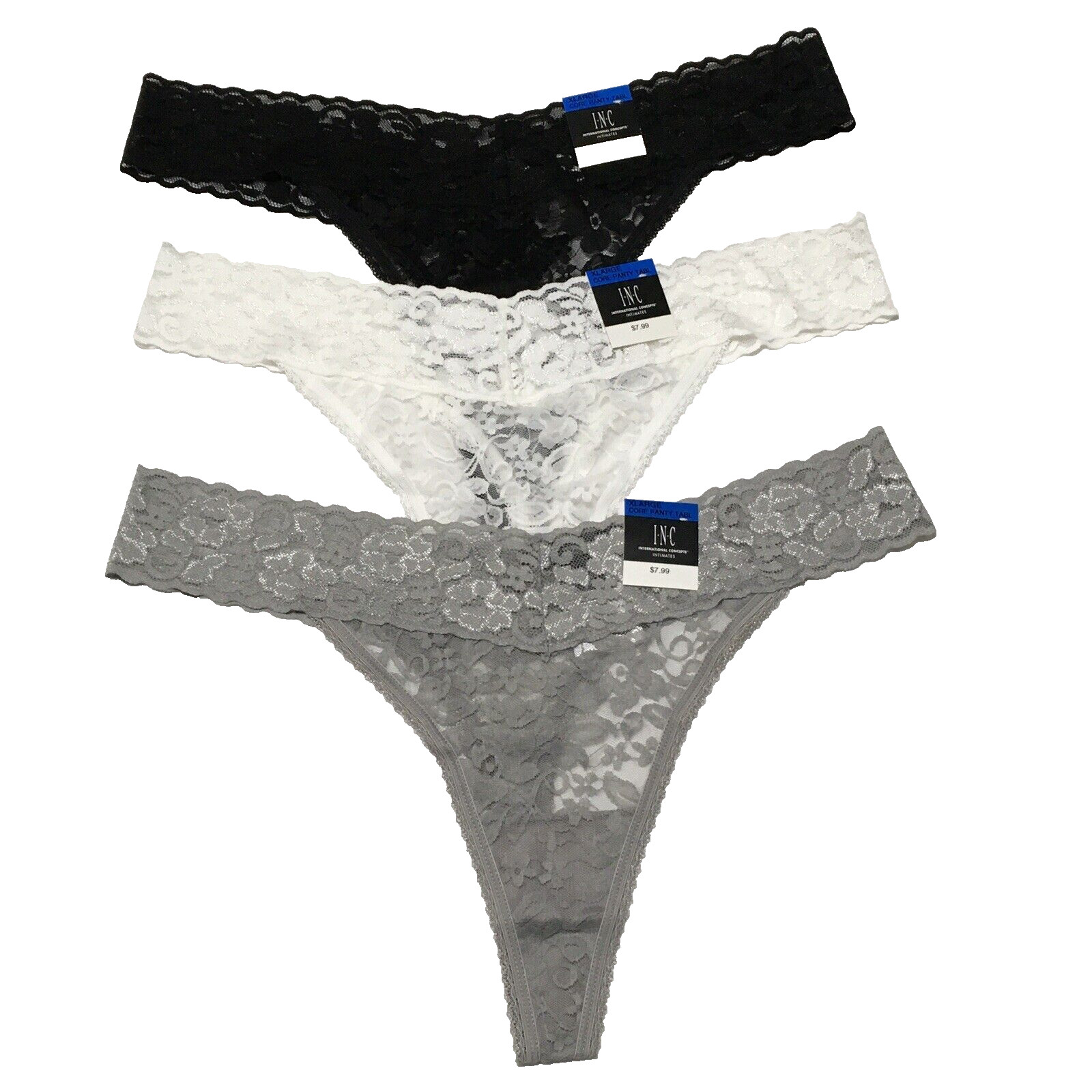 INC International Concepts 3 Pair XL Lace Thong Panty 1-White 1-Black 1-Gray