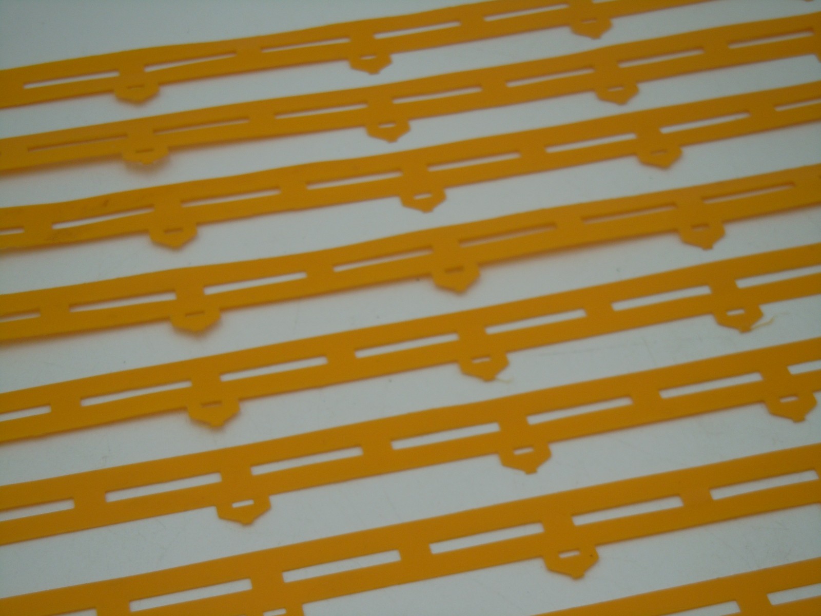 как выглядит AURORA AFX GUARD RAILS - 8 PC FOR SLITTED TRACKS DARK YELLOW - VG-EXC COND 1 фото