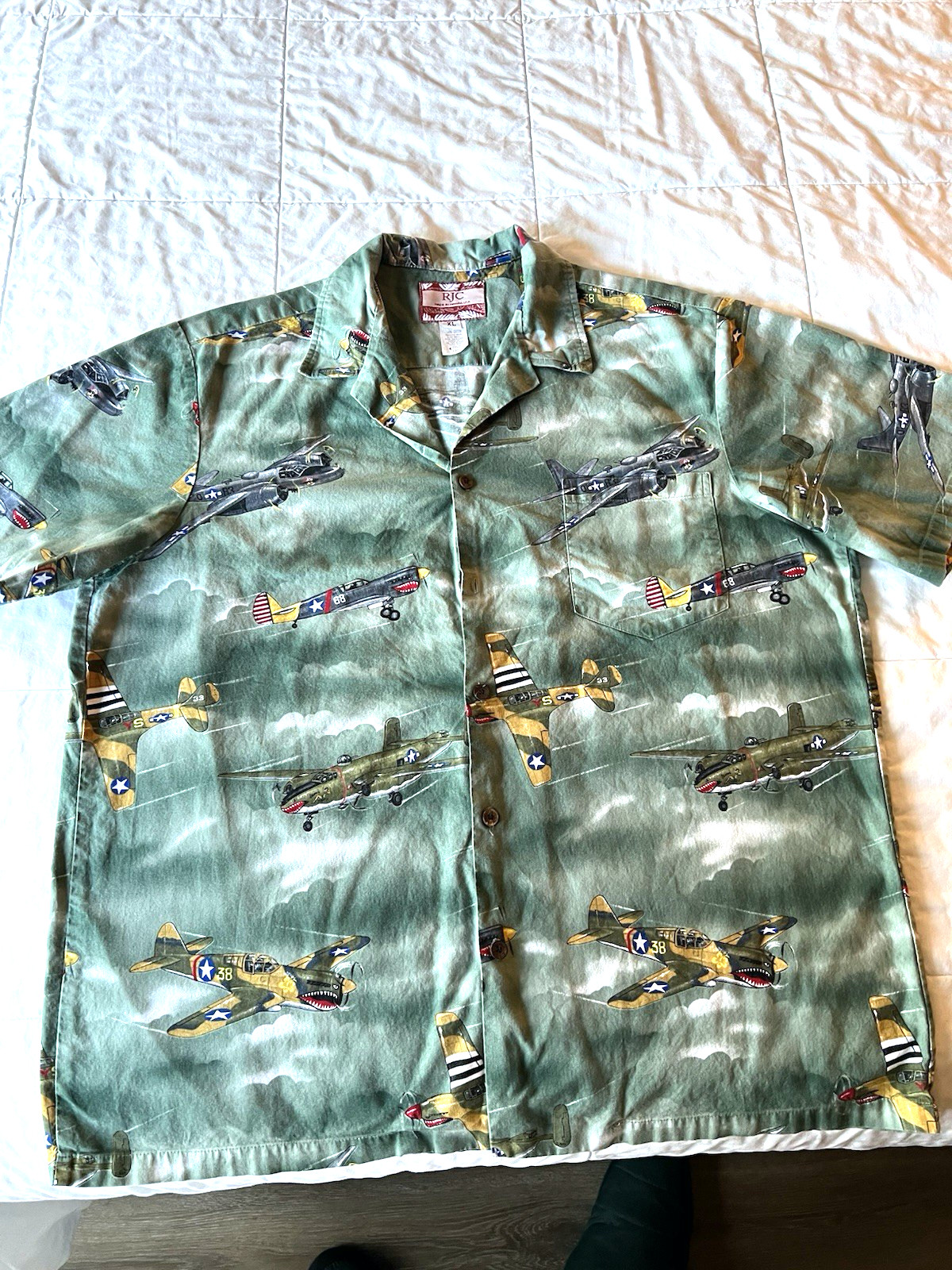 Vintage RJC Fighter Mens Military Bomber Airplanes WWII Hawaiian Shirt XL Cotton