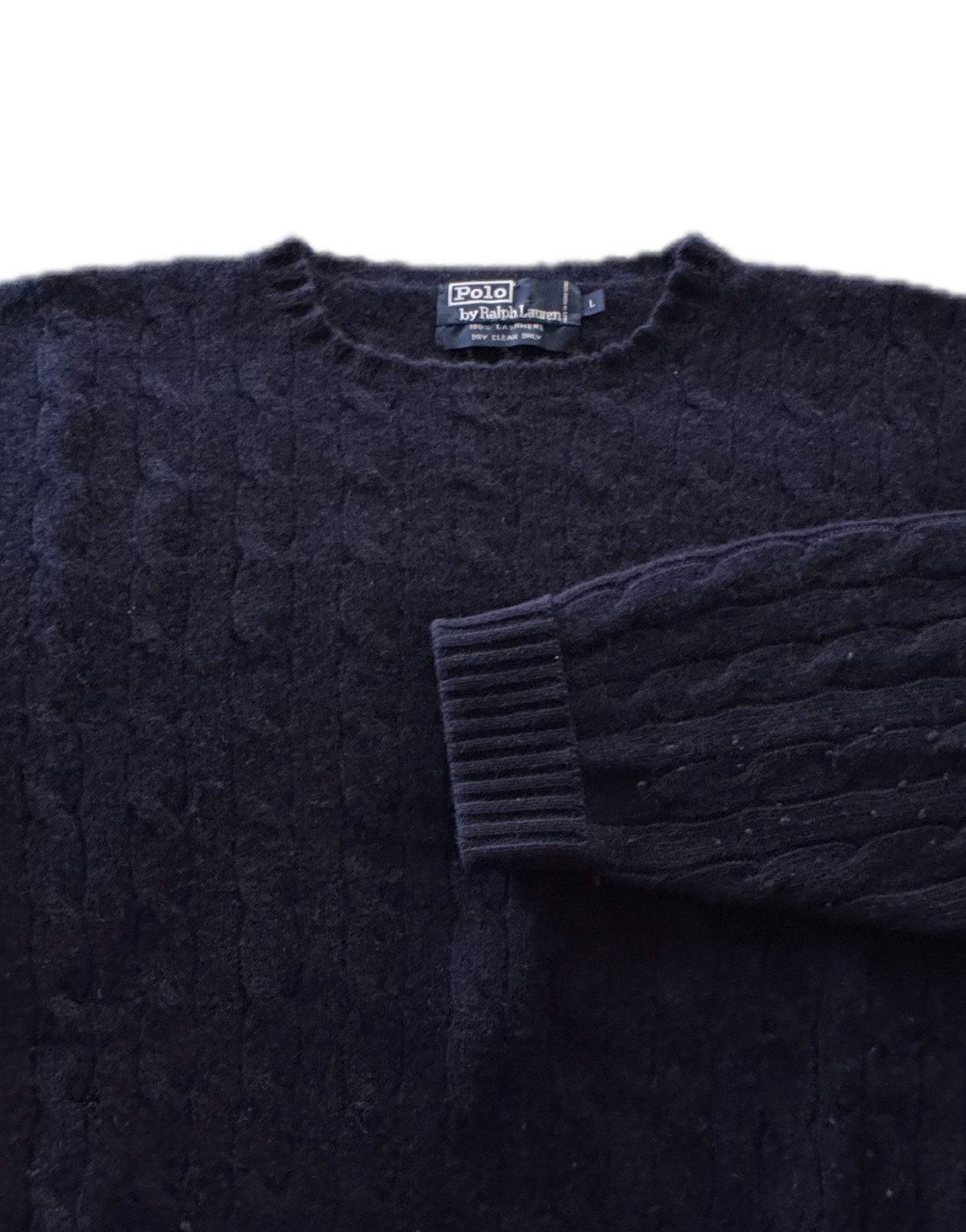 Ralph Lauren Navy Cashmere Cable Crew Neck Sweater, Men, Size: Large