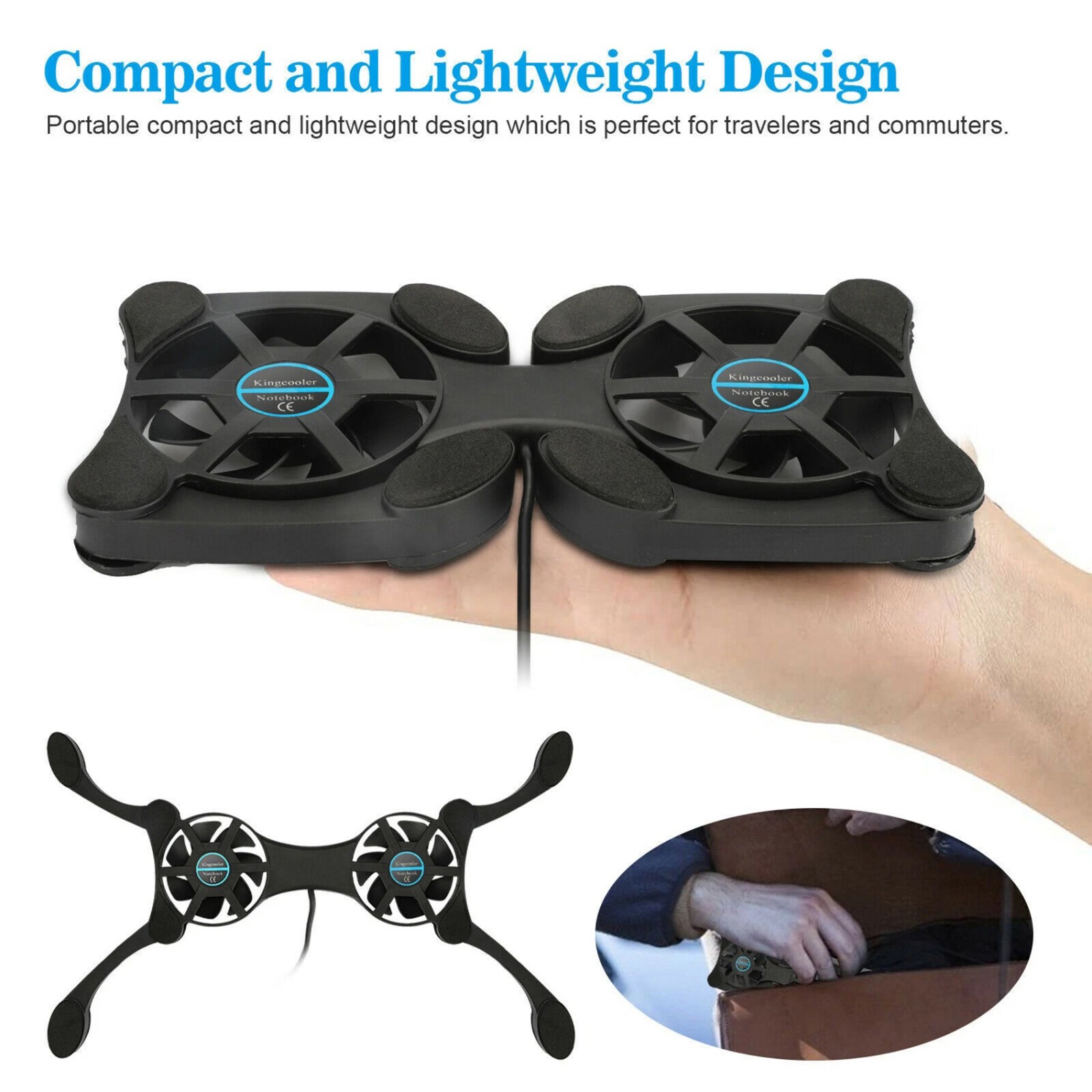 как выглядит Dual USB Fan Laptop Cooling Pad Stand Foldable for 7-15 Inch Notebook Black фото