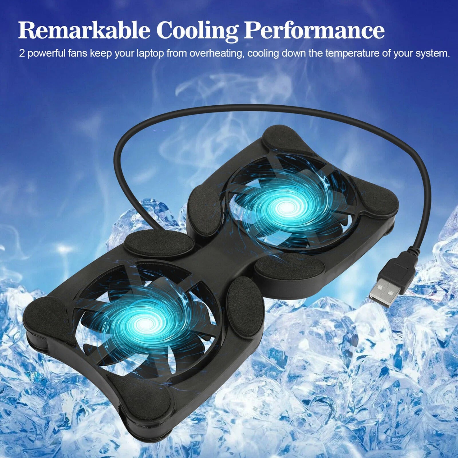 Dual USB Fan Laptop Cooling Pad Stand Foldable for 7-15 Inch Notebook Black
