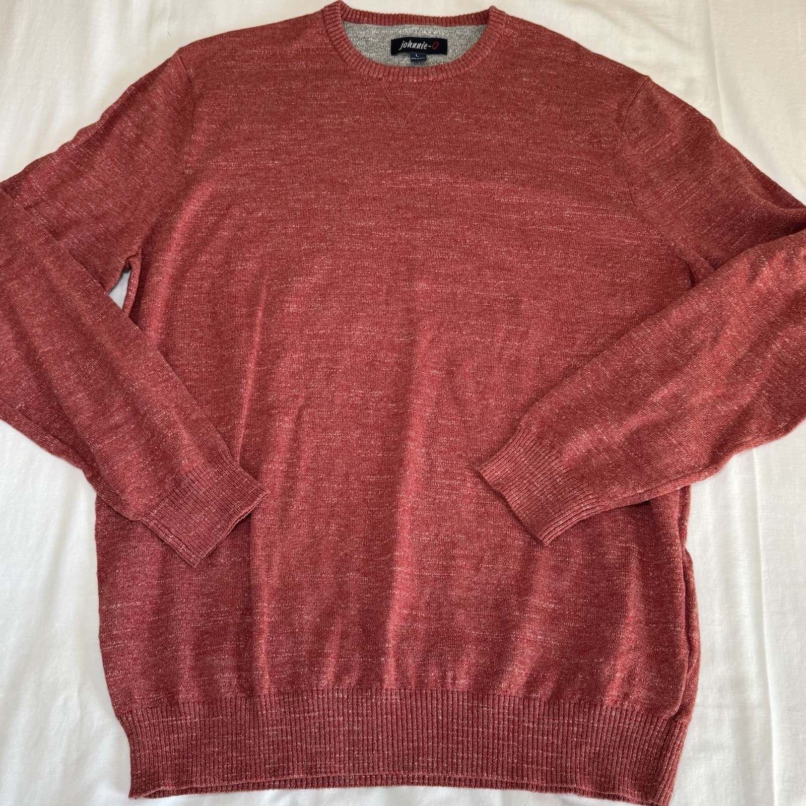 как выглядит Johnnie-O Cotton Crewneck Sweater Maroon Heathered Knit Pullover Large Golf фото