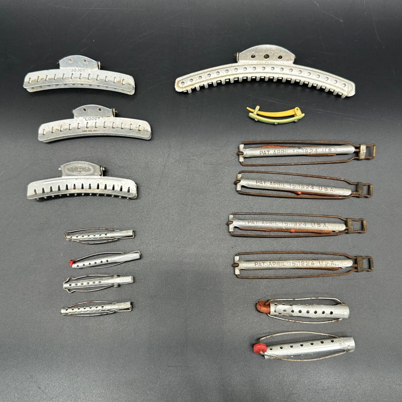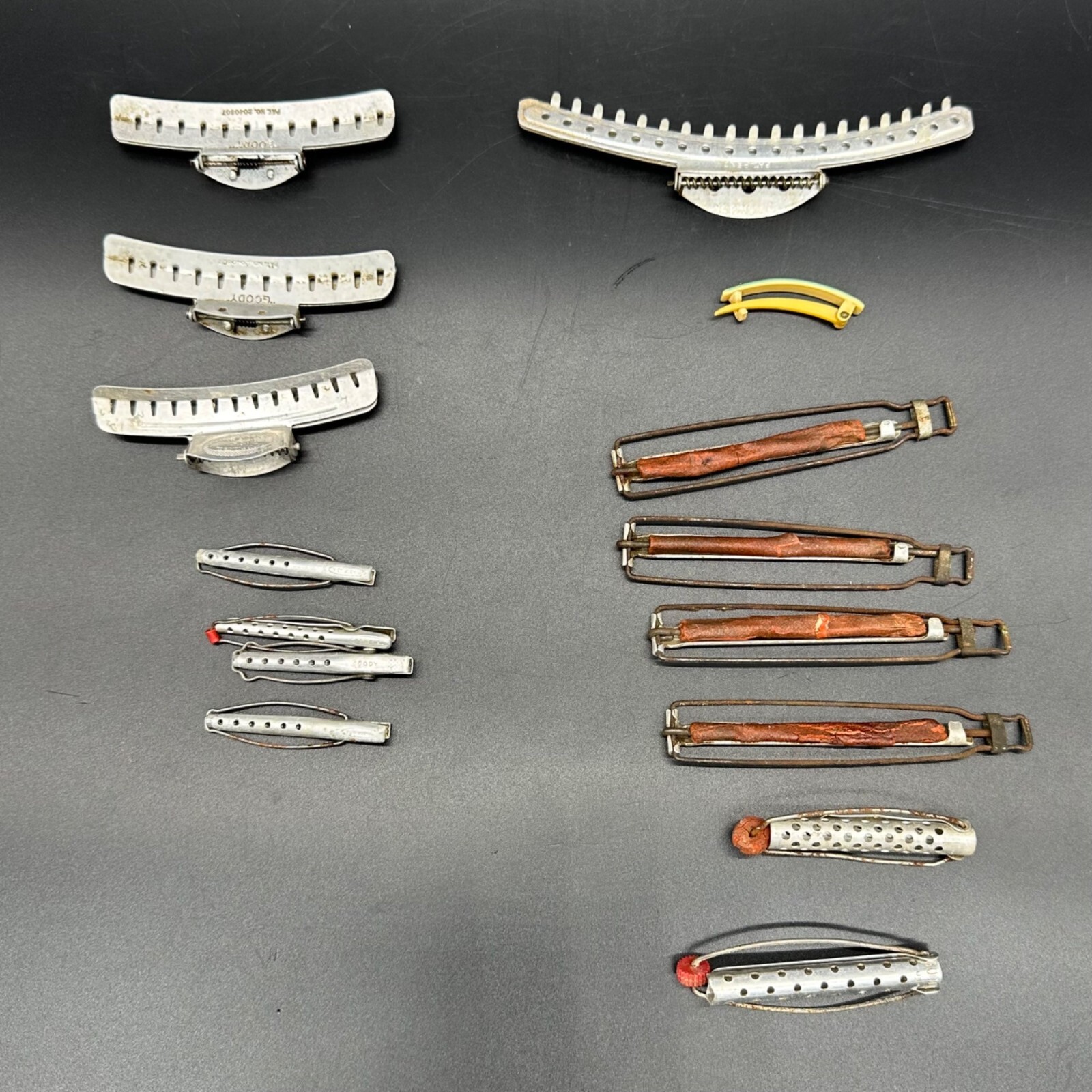 Vintage Hair Clips Curlers Aluminum Metal Plastic Goody Tip Top USA Lot AS IS