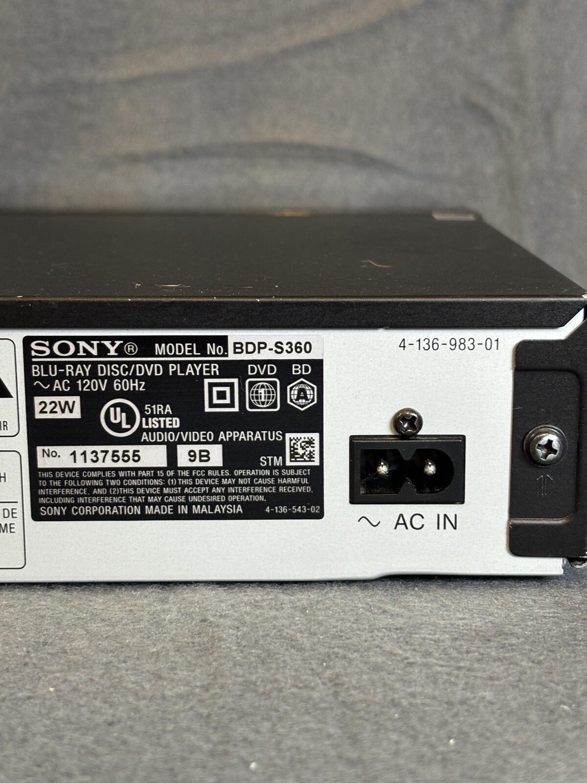 Sony BDP-S360 Blu-Ray Disc DVD Player Black HDMI AVCHD Tested Works W/O Remote