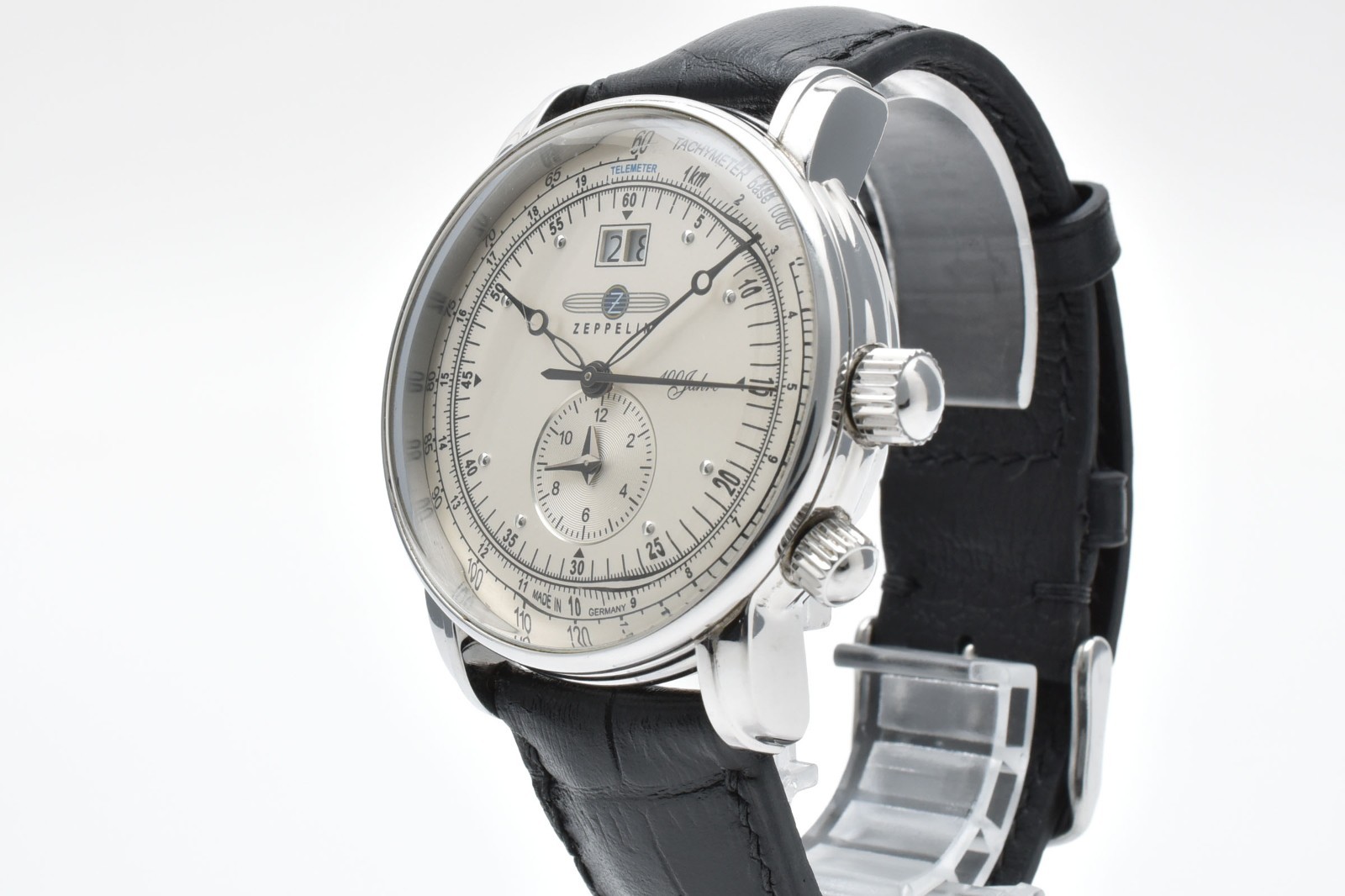 Full Set TOP MINT Zeppelin 100 Jahre 7640 Quartz Tachymeter Mens Watch JAPAN