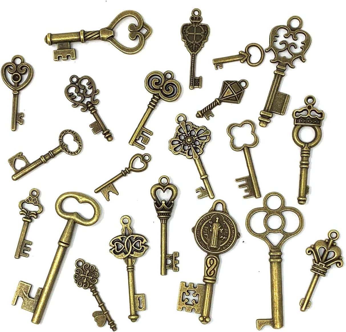 125 PCS Vintage Skeleton Key Set Charms, Mixed Antique Style Bronze Brass for P