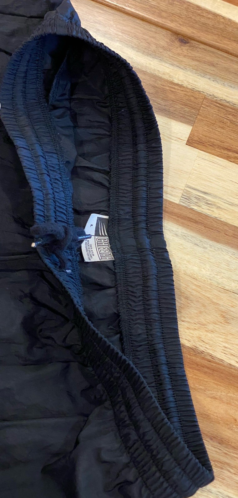 Vintage 80s Cheetah Elastic Waist Nylon Jogger Pants Windbreaker Black Womens L