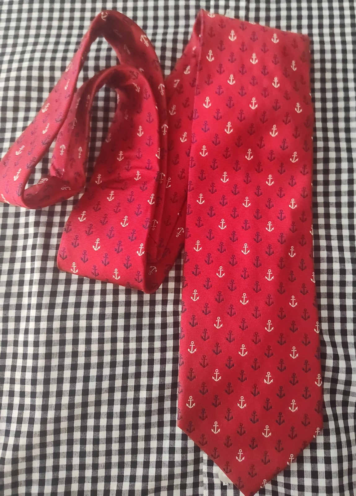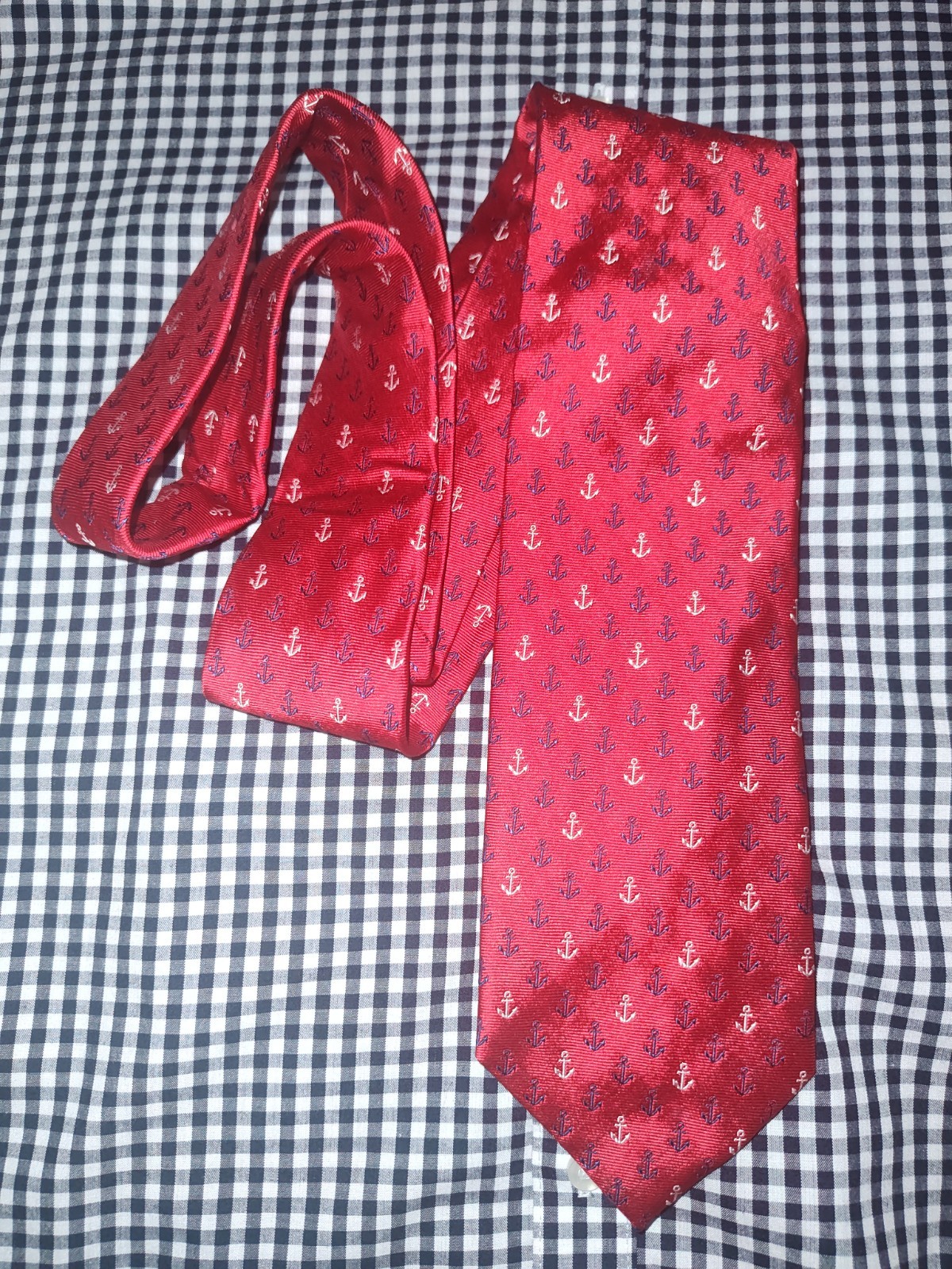 Men's Nautica 100 Silk Neck Tie Anchors Nautical Design Preppy Red Navy Silver