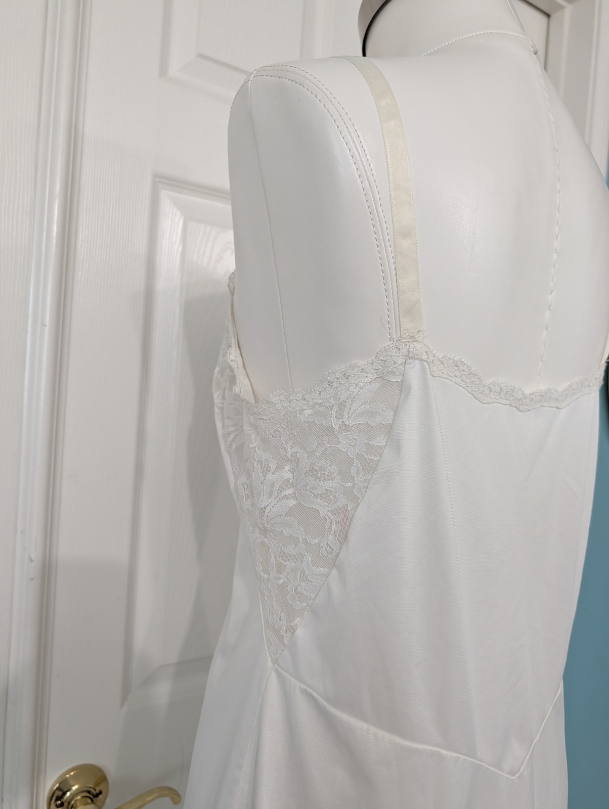 как выглядит Vtg Sears Slip Lace Dress or Nightgown Sz 36/Small/ 8 Snig Fit White Non-cling фото