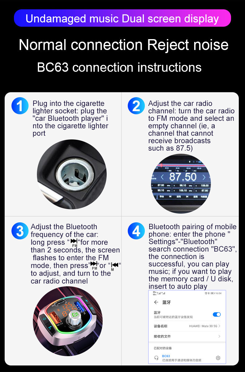 • Bluetooth Car MP3 FM Wireless Transmitter USB Charger Kit W/Atmosphere Light