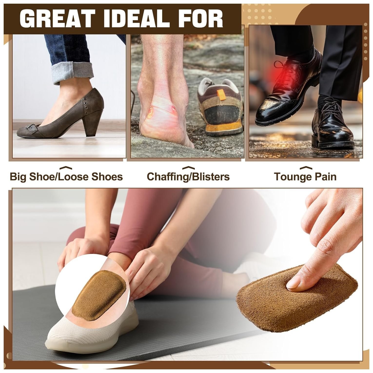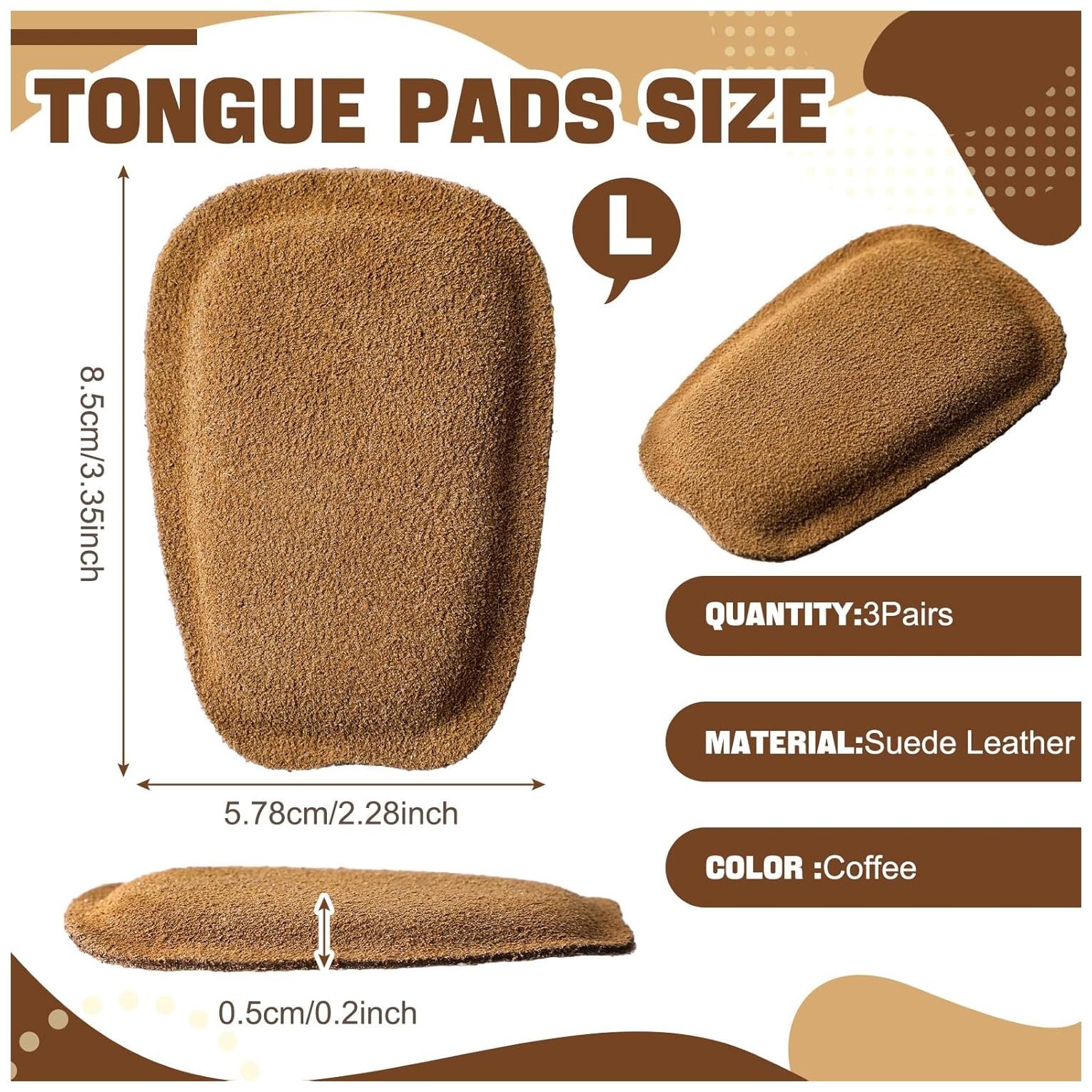 3 Pairs Shoe Tongue Pads Soft Self Adhesive Inserts for Men Women Handmade Elast