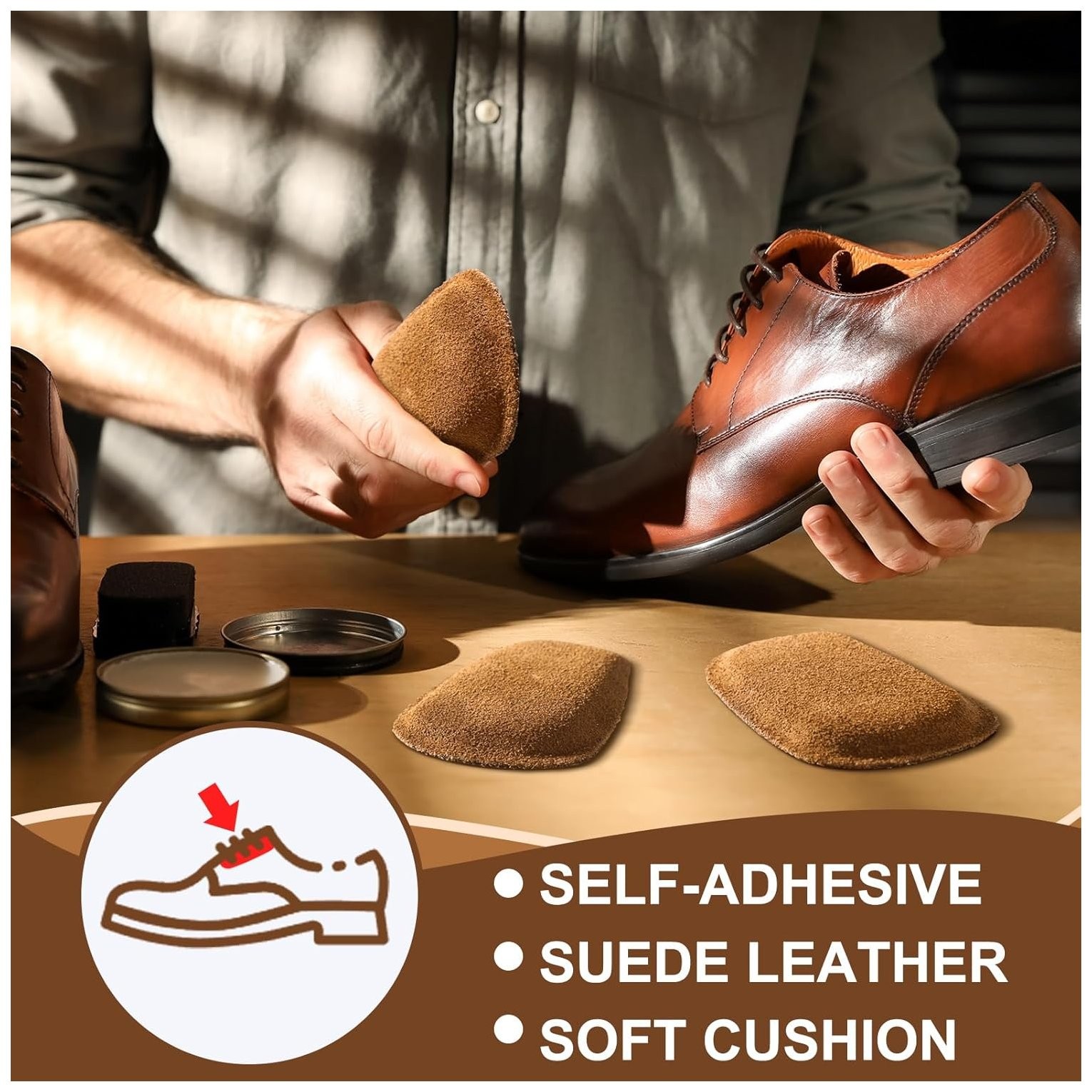 как выглядит 3 Pairs Shoe Tongue Pads Soft Self Adhesive Inserts for Men Women Handmade Elast фото
