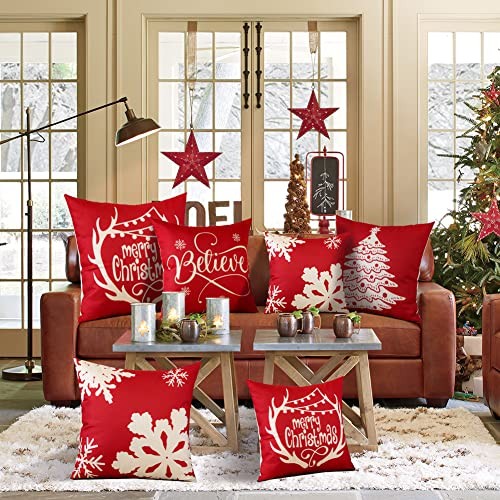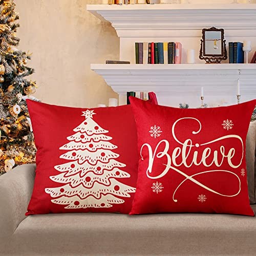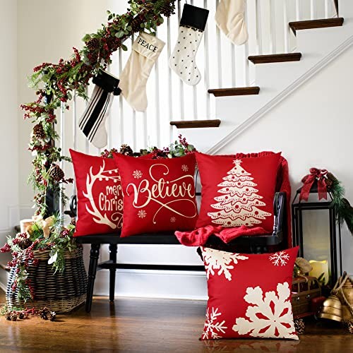 Christmas Throw Pillow Covers 16x16 Inch 16 x 16 Pack of 4 Christmas Red